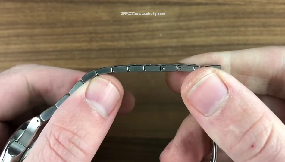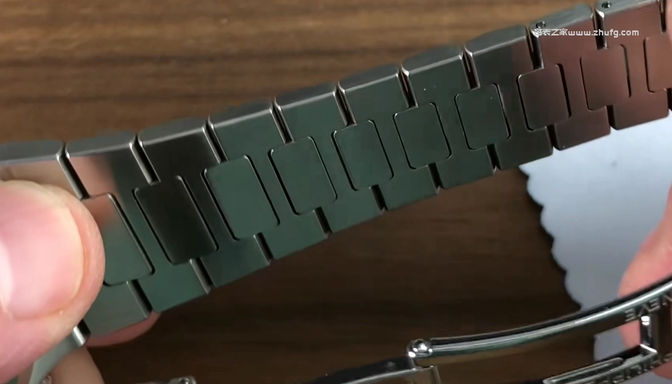 再來看看這條表鏈,做工也非常不錯。可以看到百達翡麗還是堅持使用銷釘來固定可拆卸鏈接,這一點主要也是出於安全性角度,比起螺絲會更保險一些。但是如果想要自己拆解這些表鏈,還是需要像頂針或者小錘子這樣的工具。