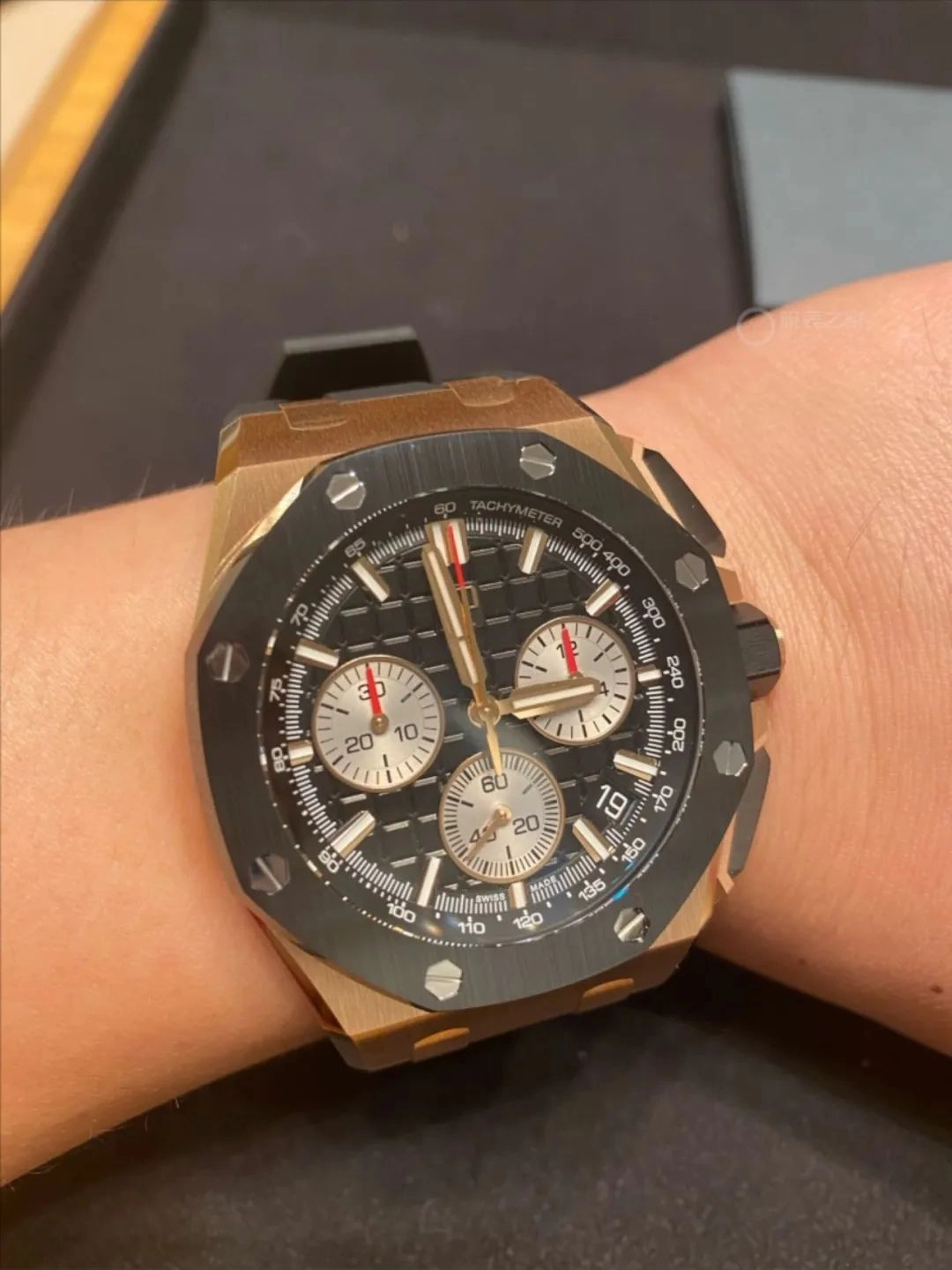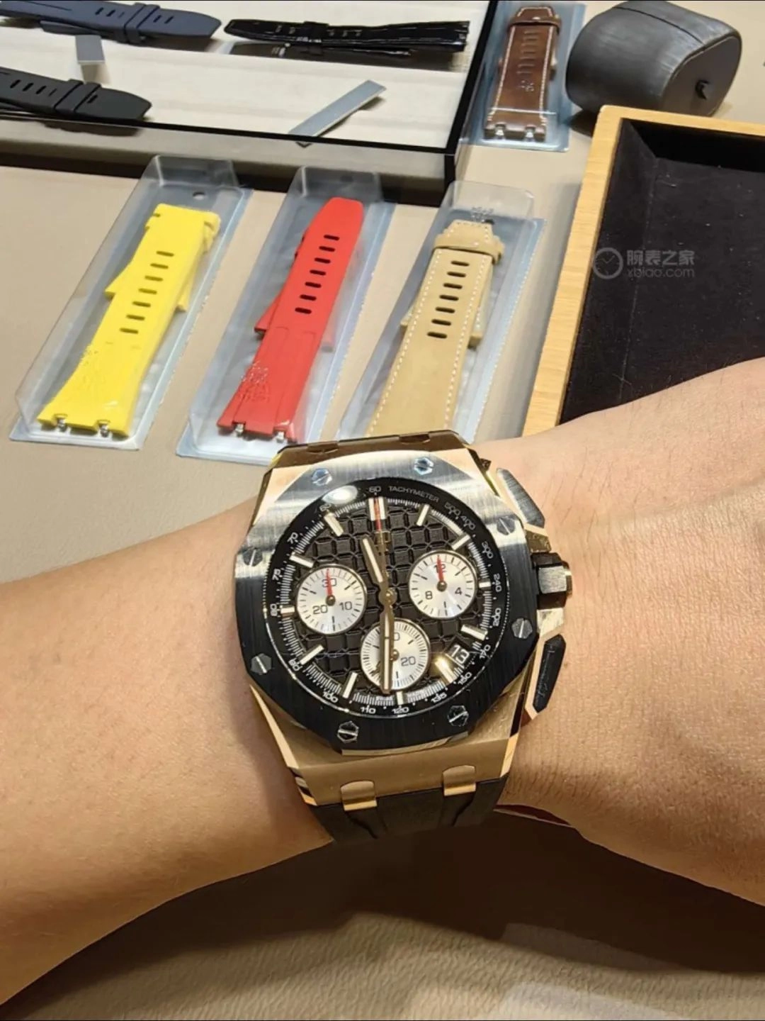 4. 色彩平衡:經典的黑色離岸型(如26420RO)是百搭王,但也注意整體色彩不過於雜亂,突出腕表主角地位。