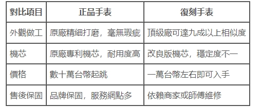 復刻手表跟正品的差別在哪裡