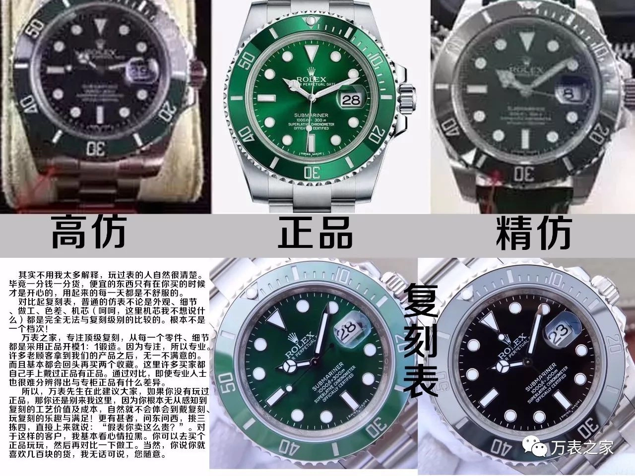 目前市場上那麽大五花八門的產品,也許之前買過的讀者會有這樣感覺,為什麽同一款表,有的差距和正品為什麽那麽大?這種情況,你買的就是一個普通仿表,不論哪個行業都是分等級的。