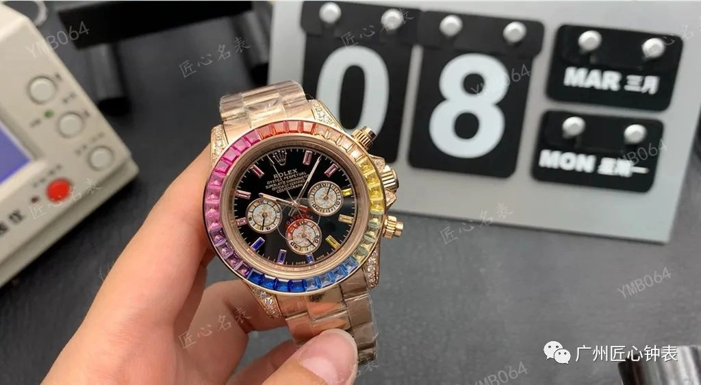 造復刻表的組織都是一些分工明確的小作坊。大多數都是根據目標表的照片和真表的數據進行造表,不存在購入真表進行開模組裝。那麽不足在哪裏呢?外觀做工雖然較好,但是表殼、表帶、表盤或多或少都有存在瑕疵。這類手表在外觀上開始下工夫,唯獨質感細節差別還是存在。