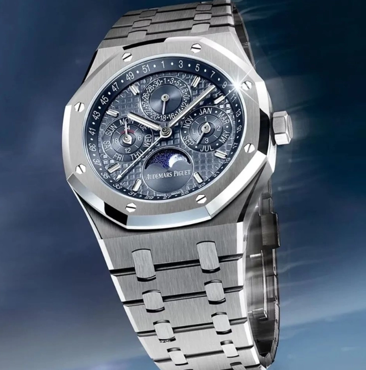 愛彼家一塊閃着冷光的白金腕表
