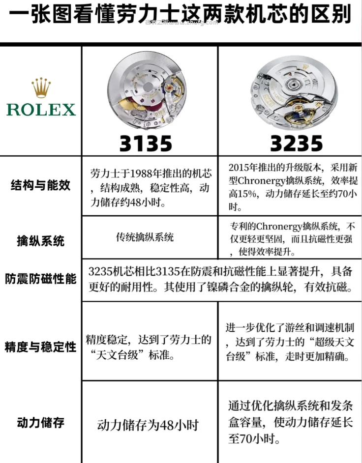 一張圖看懂勞力士這兩款機芯的區別