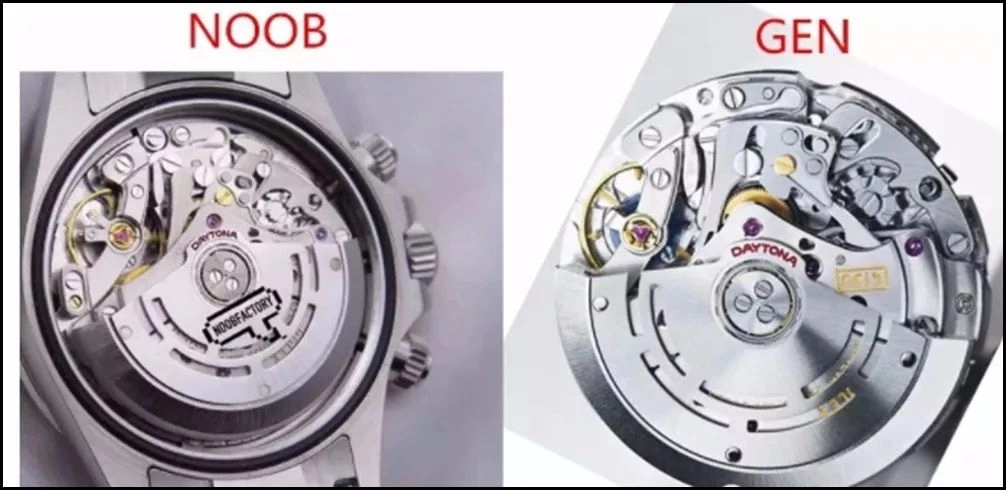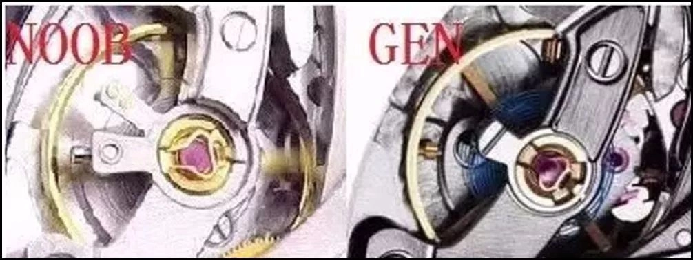 下圖的GEN代表正品,N廠開發的CAL.4130機芯的KIF避震器與正品同部位的。