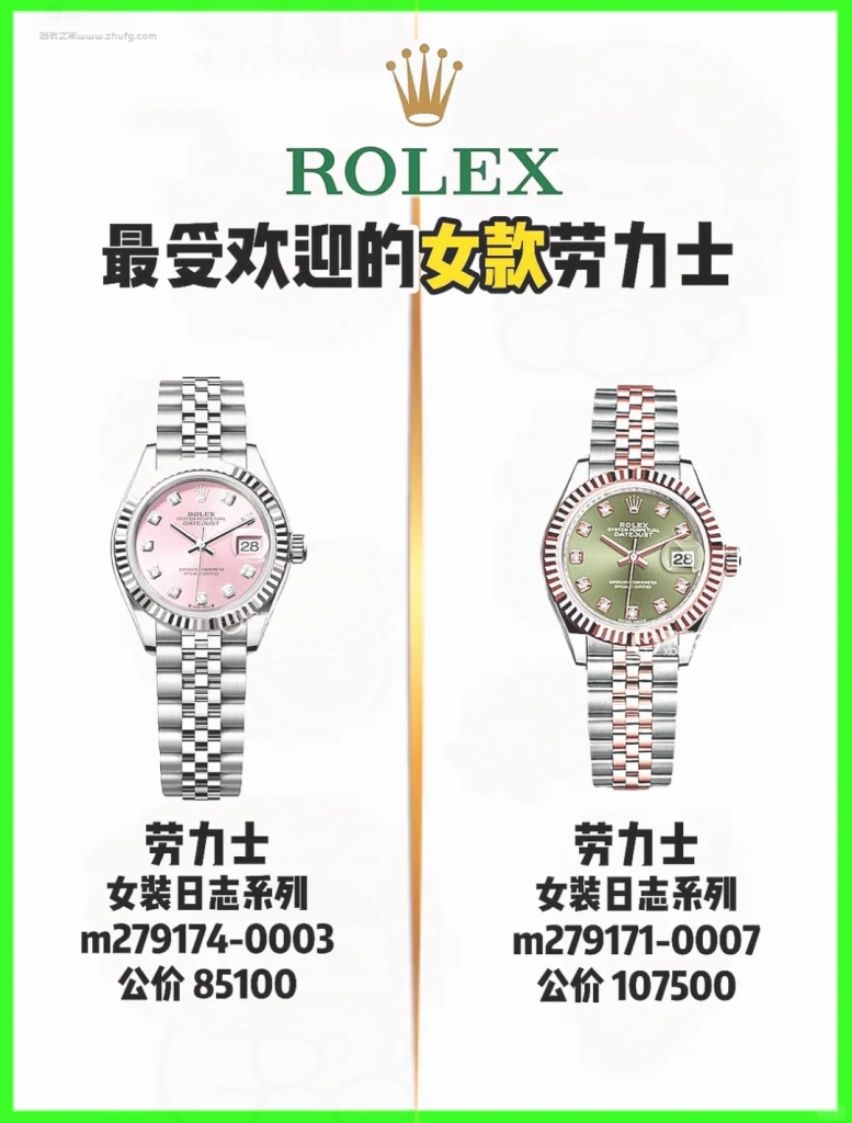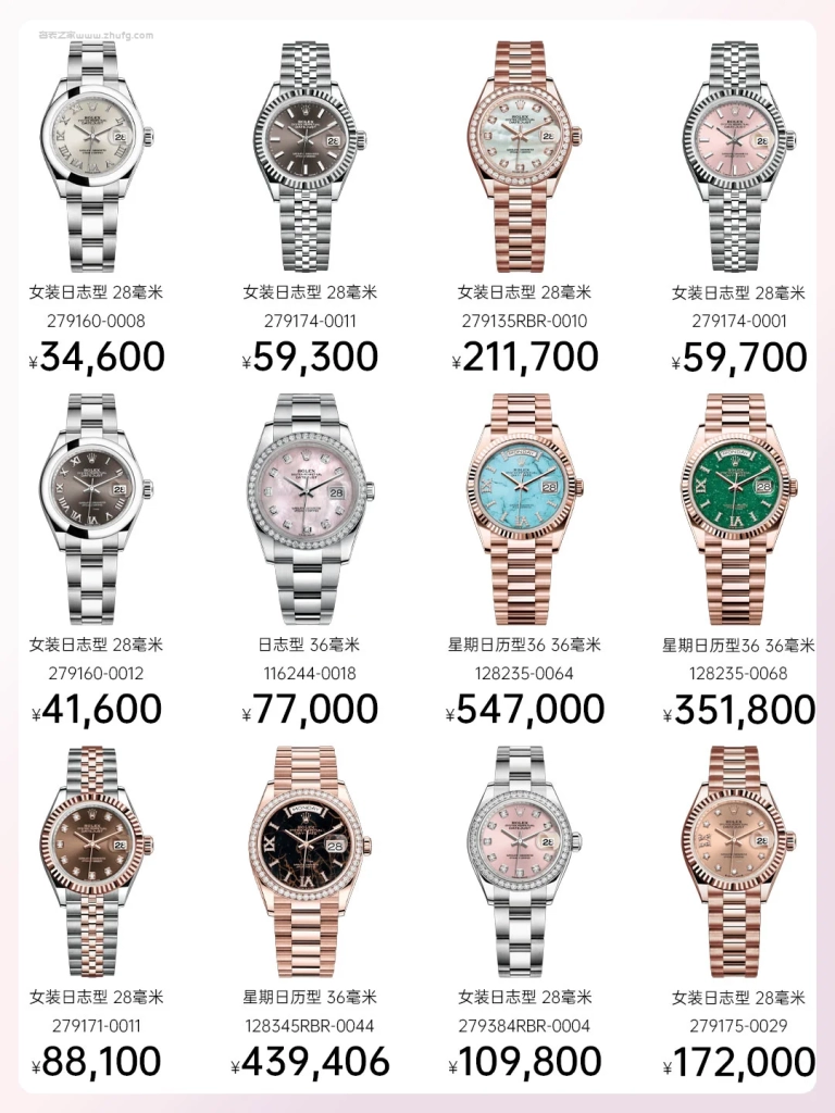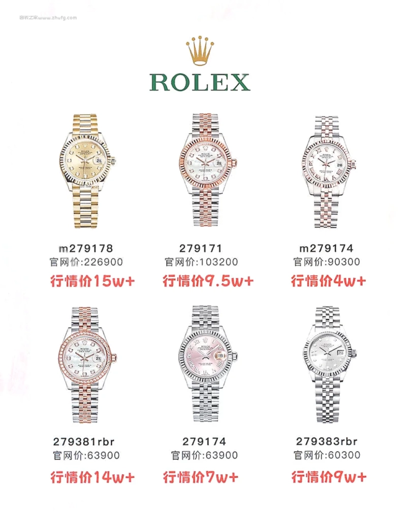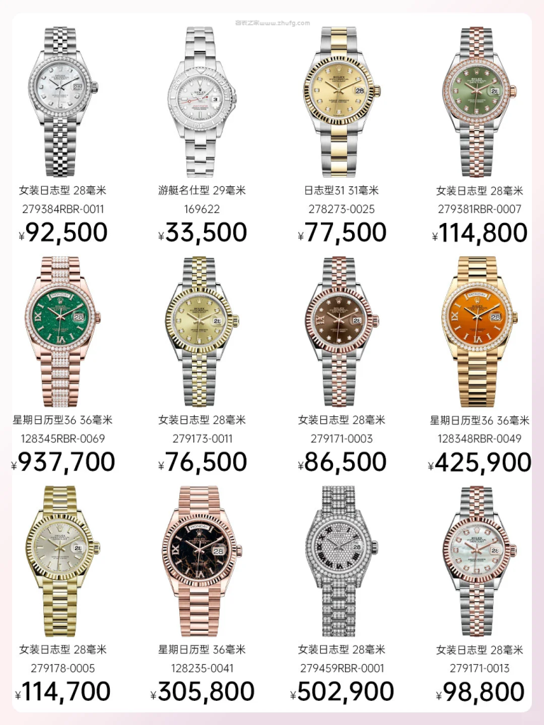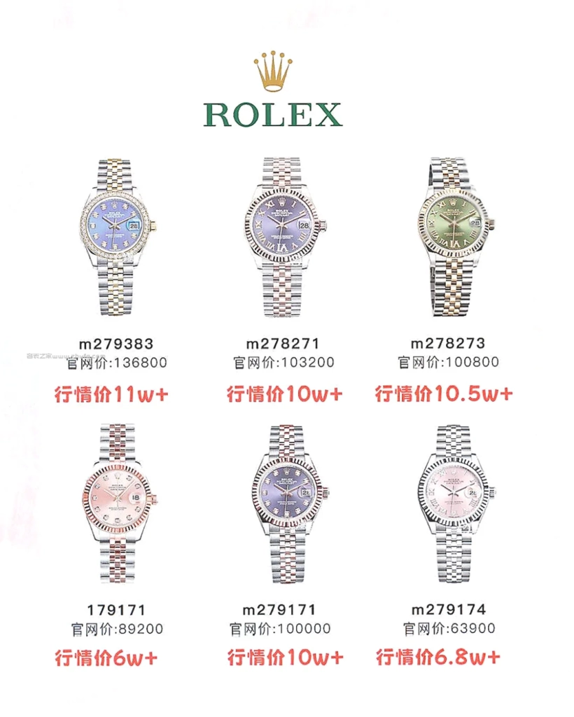 最後提醒一點,日志女款保值核心在於盤面顏色稀有度 + 金屬材質 + 鑽飾配置,越有辨識度的配色越保值,比如綠羅馬、香檳鑽、藍面鑽,這幾年都是熱門,不建議選純銀面、粉面鋼款那類標準款,行情起伏較大。