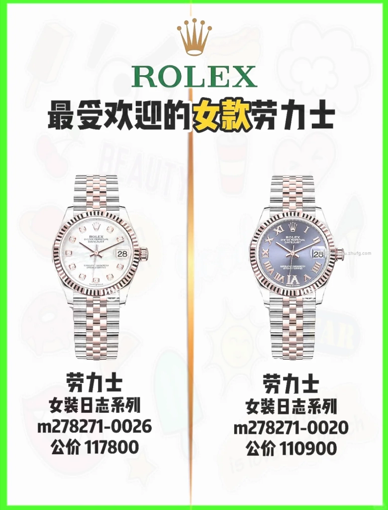 還有一個小建議,28毫米的日誌女款基本是標準尺寸,細手腕戴起來剛剛好,但如果喜歡存在感大一點的,可以考慮31毫米,像278271、278273這些,價位會高一點,但佩戴效果穩重不少