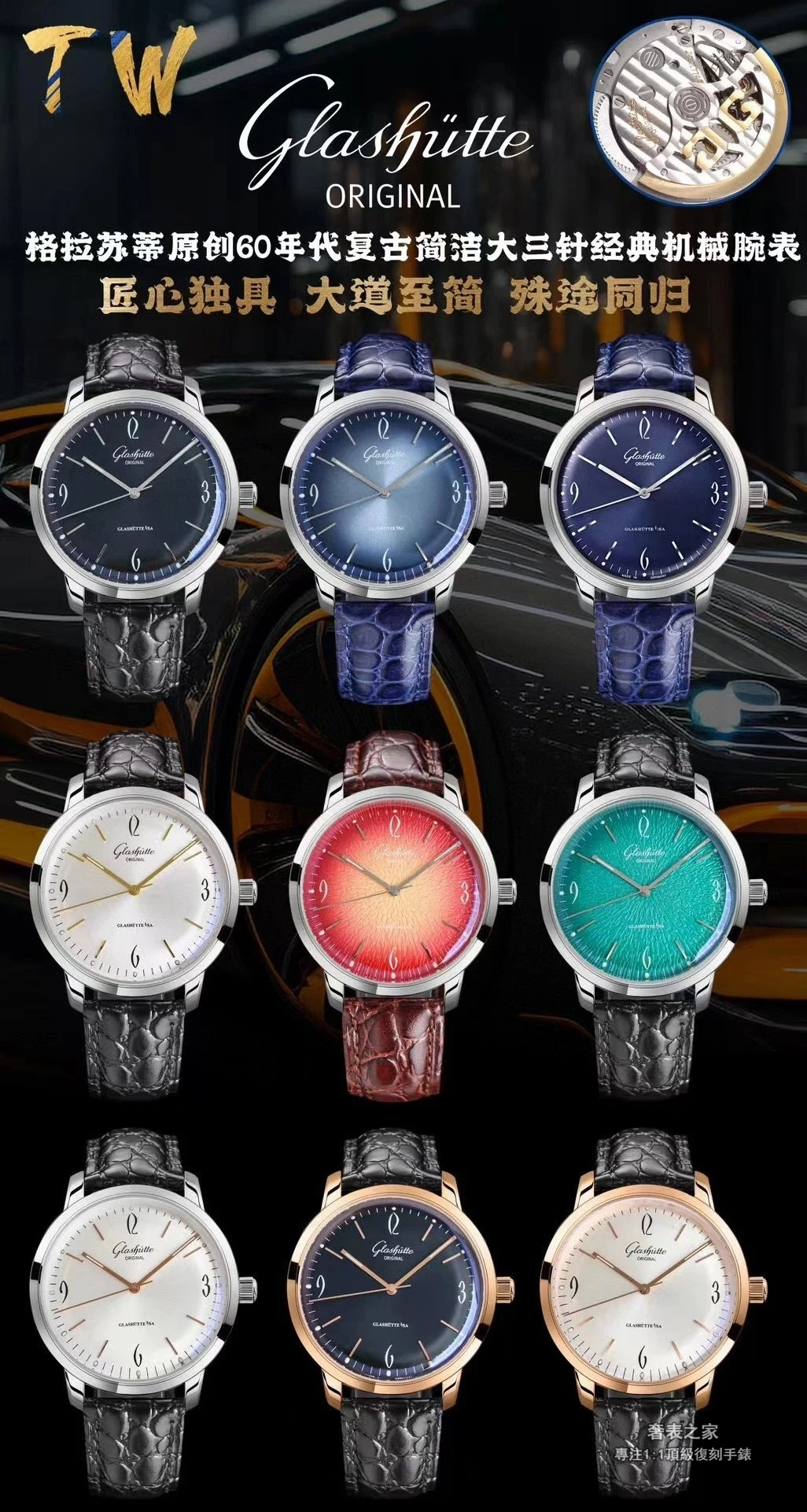 格拉蘇蒂原創 60年代復古 1-39-52-01-02-04 三針 TW Factory 高端復刻