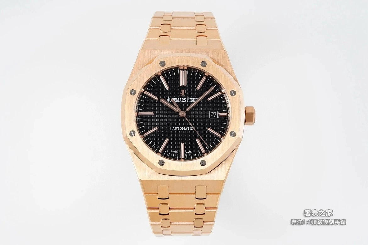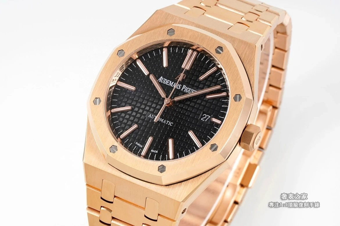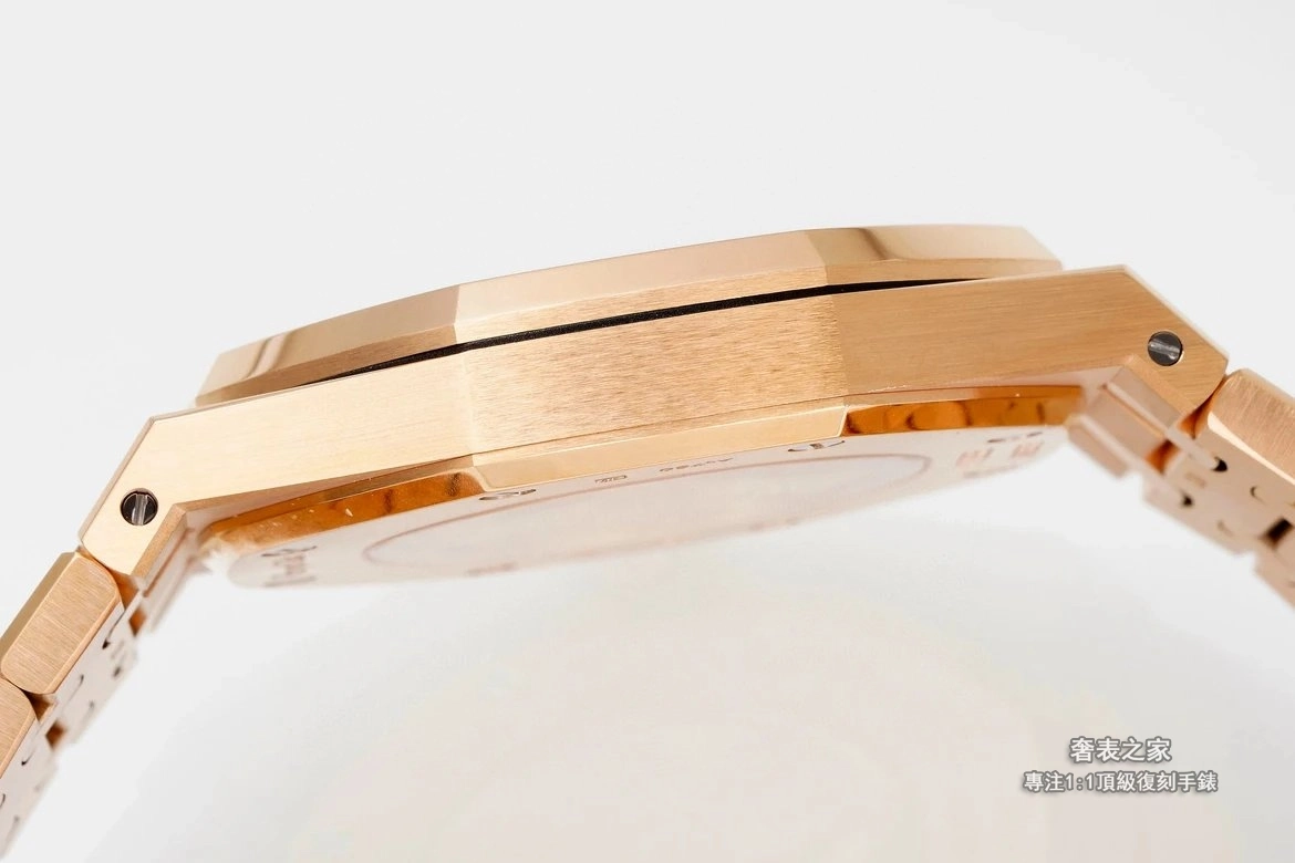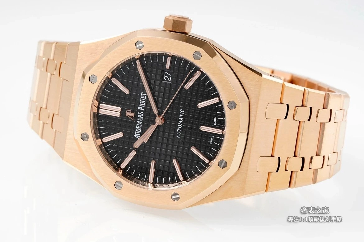 錶殼與錶帶採用細膩直線拉絲工藝,邊角處理圓潤不刮手,完整呈現皇家橡樹標誌性的金屬質感。活動式錶帶頭粒結構、錶扣開合手感與雕刻細節,均對齊正品規格。