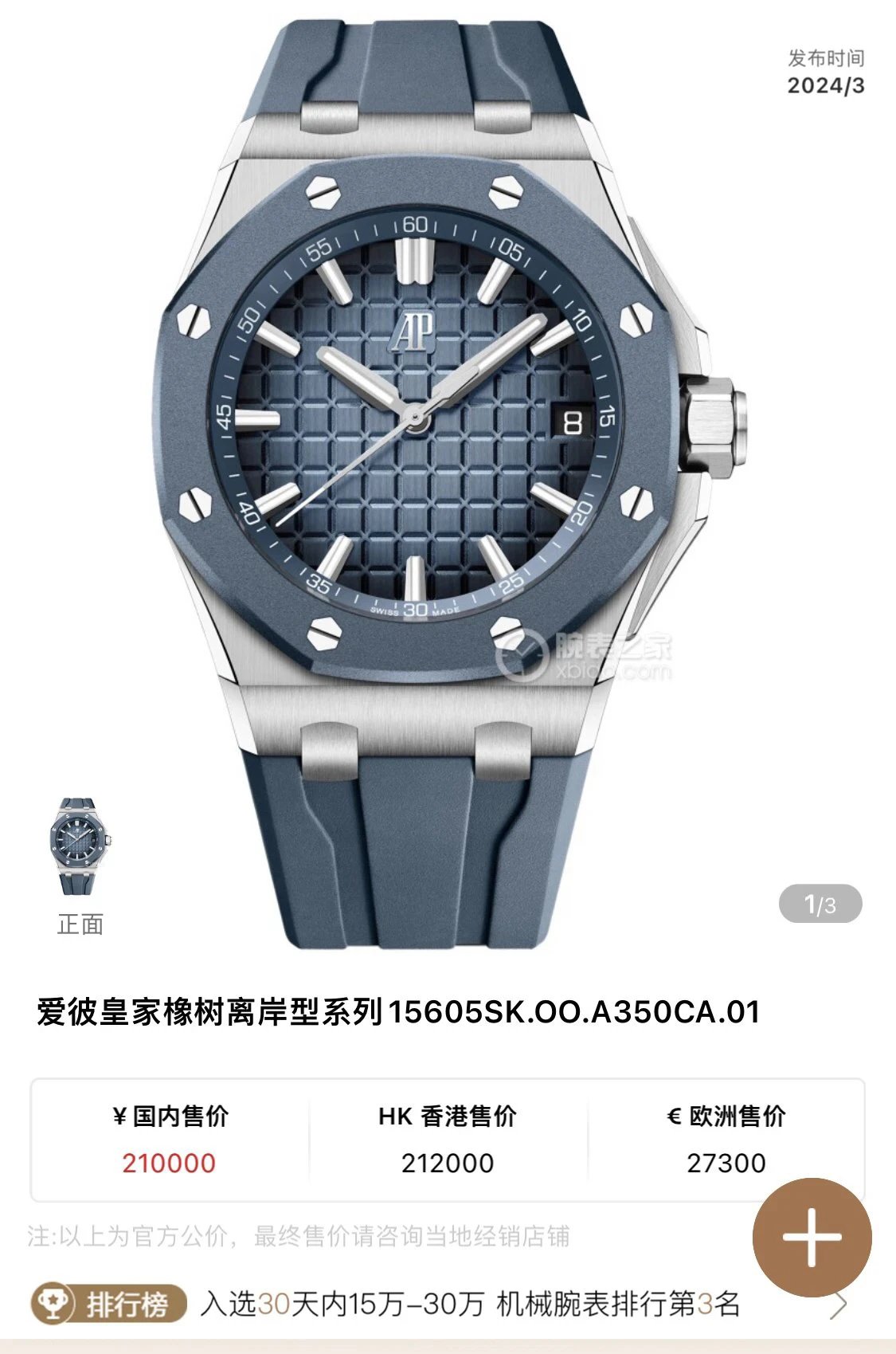 愛彼皇家橡樹15605sk 43mm藍圈高端復刻表