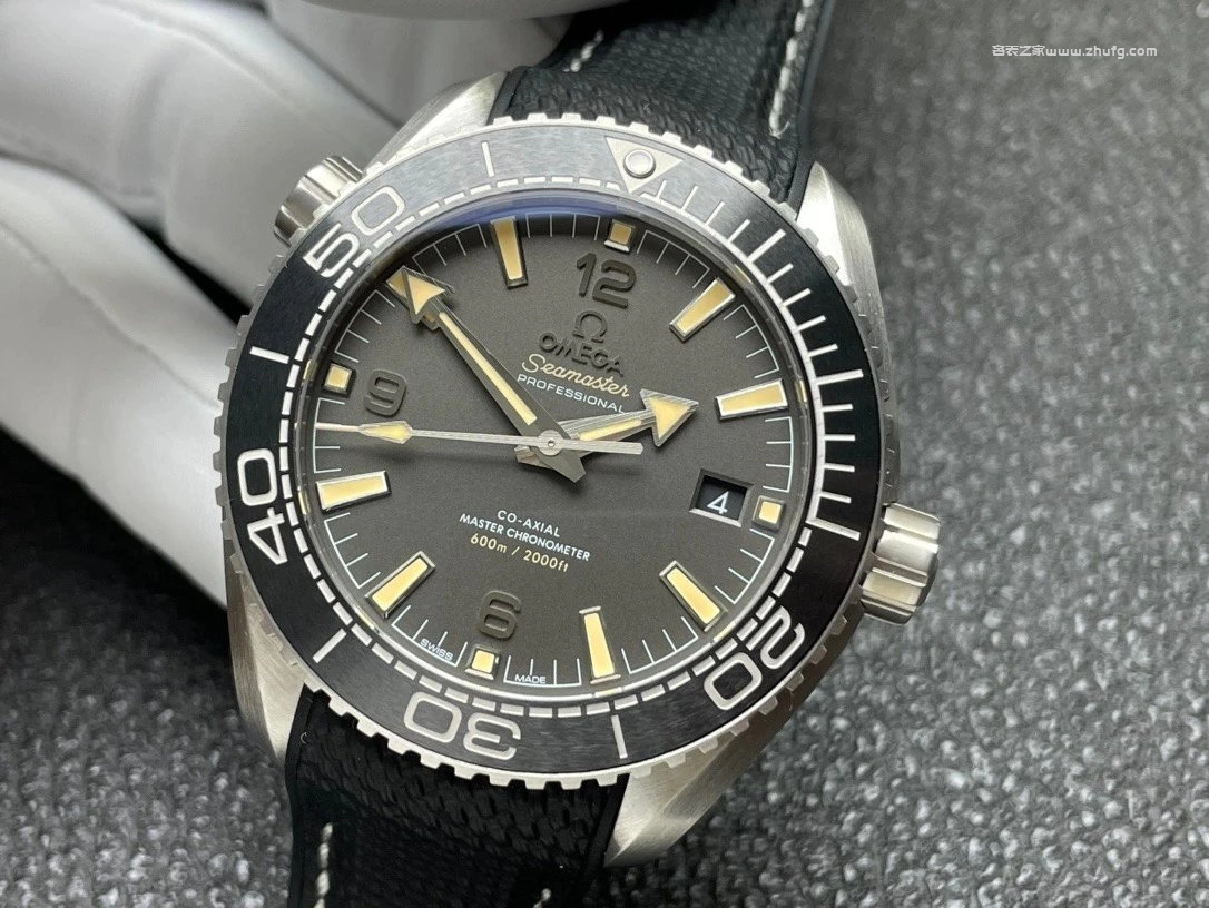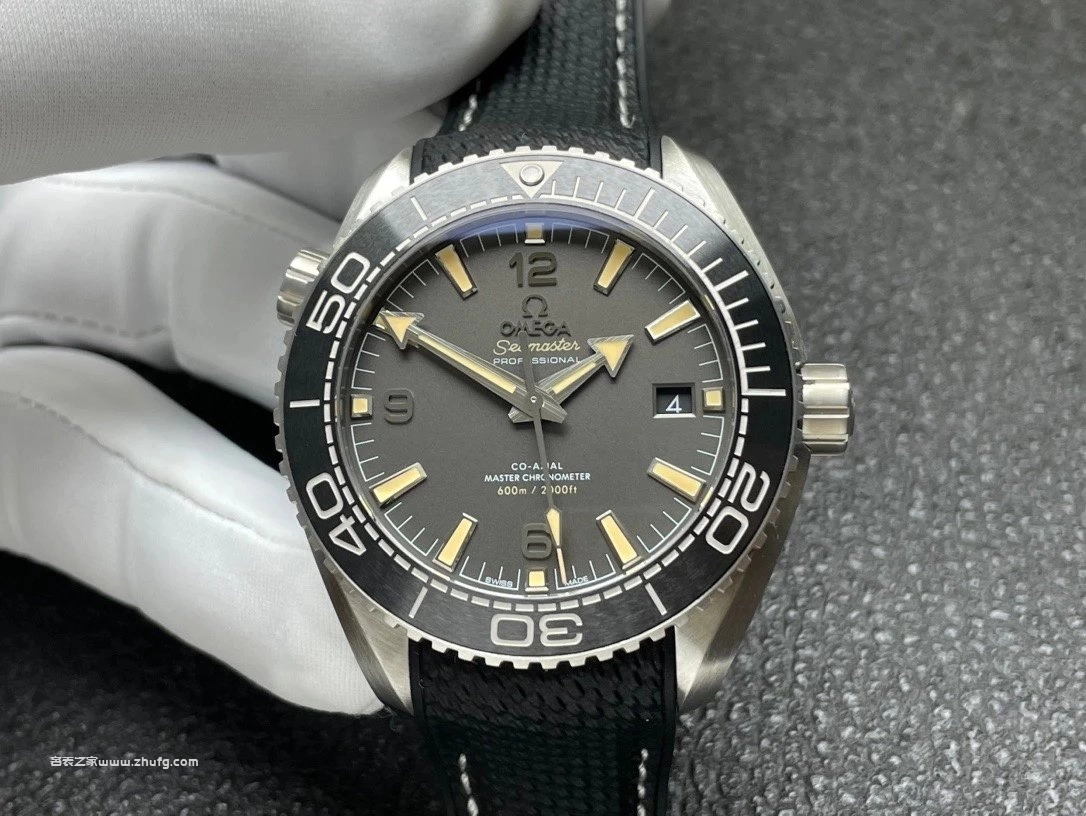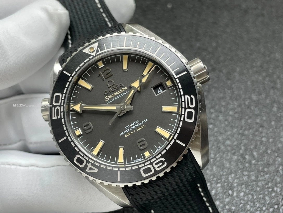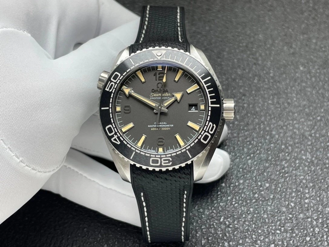 VS廠最新力作——歐米茄海馬600米系列海洋宇宙款(型號215.32.44.21.01.002)。錶殼直徑43.5毫米,採用精鋼材質搭配黑色陶瓷單向旋轉錶圈。啞光黑色錶盤搭配復古米黃色夜光時標與粗獷箭形指針,整體沉穩又不失運動感。