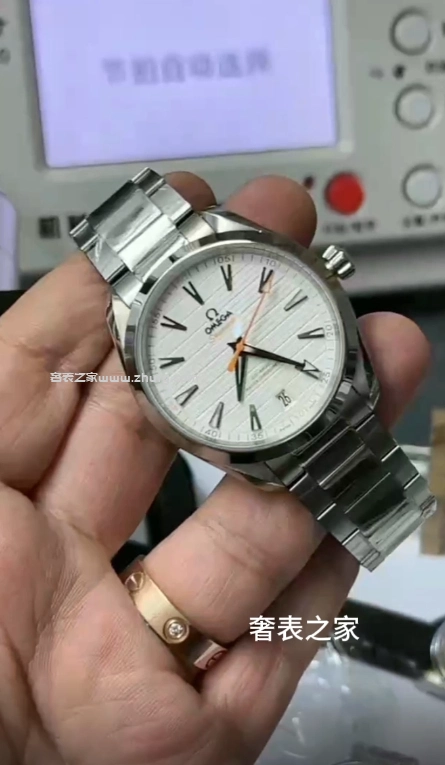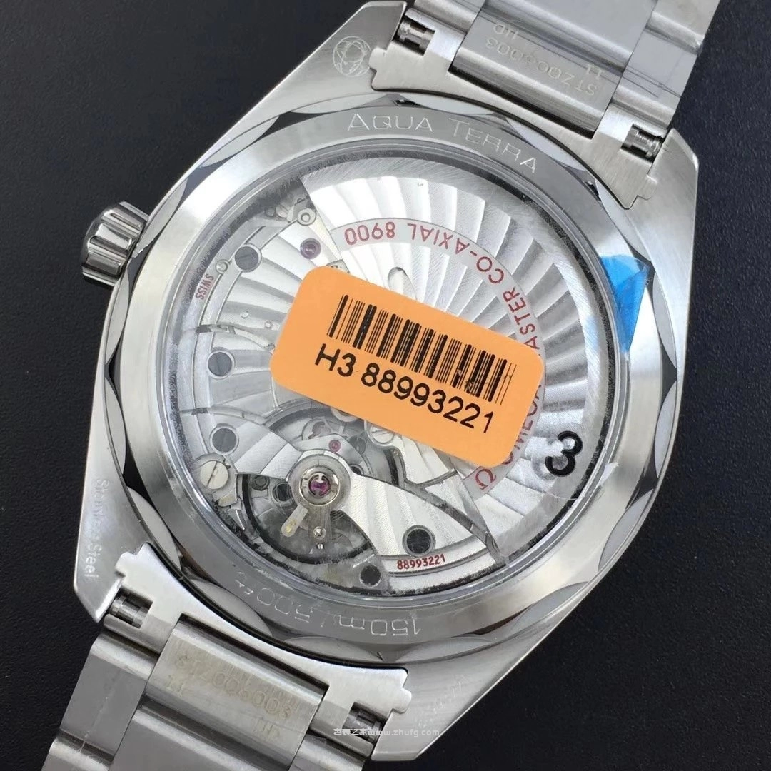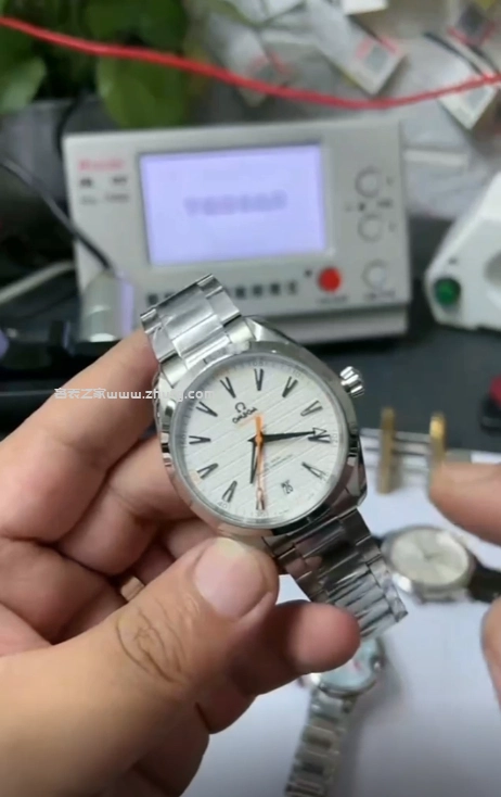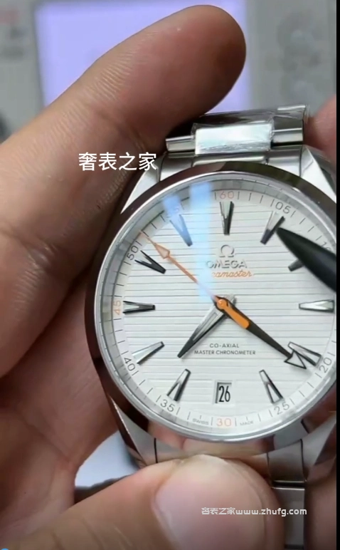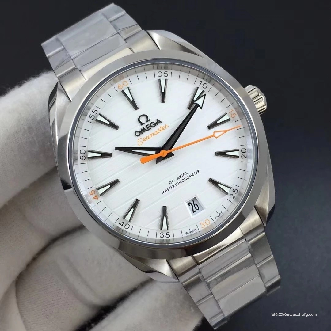 VS廠出品的歐米茄海馬 Aqua Terra 150米白面橙針款,搭載8900同軸自動機芯,還原正品水平柚木紋理錶盤與細膩拋光拉絲工藝。橙色秒針與分鐘刻度極具辨識度,搭配41毫米不鏽鋼錶殼與鋼鏈錶帶,整體質感精緻。玻璃採用藍寶石鏡面,底蓋透視設計,防水深度達150米,是一款兼具運動與商務風格的高品質復刻腕錶。