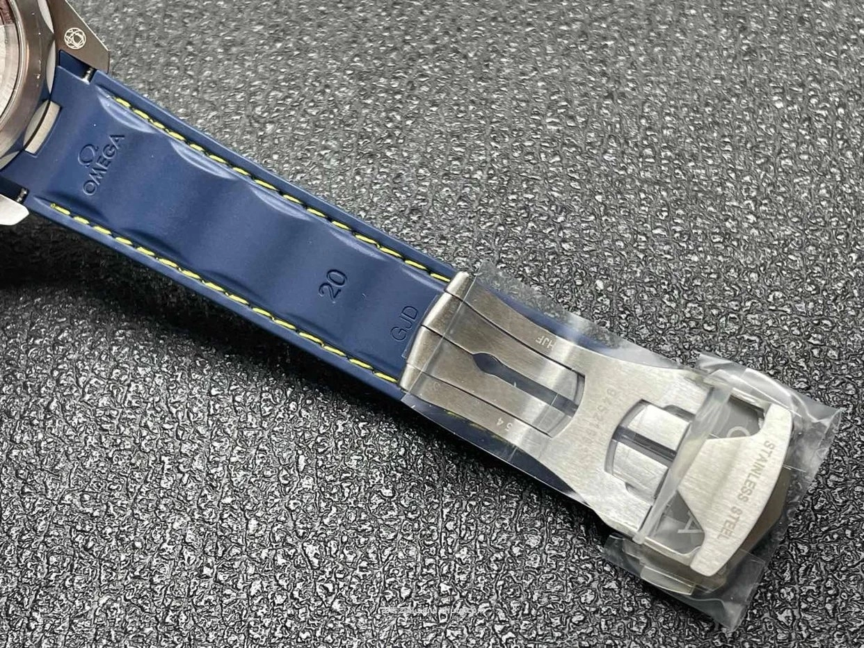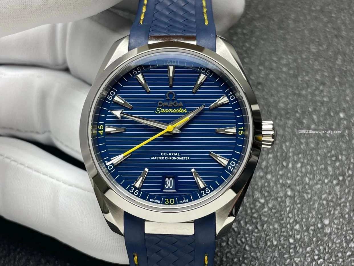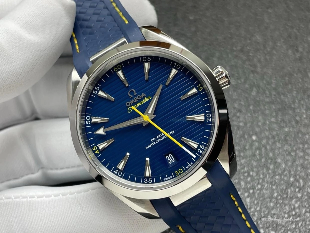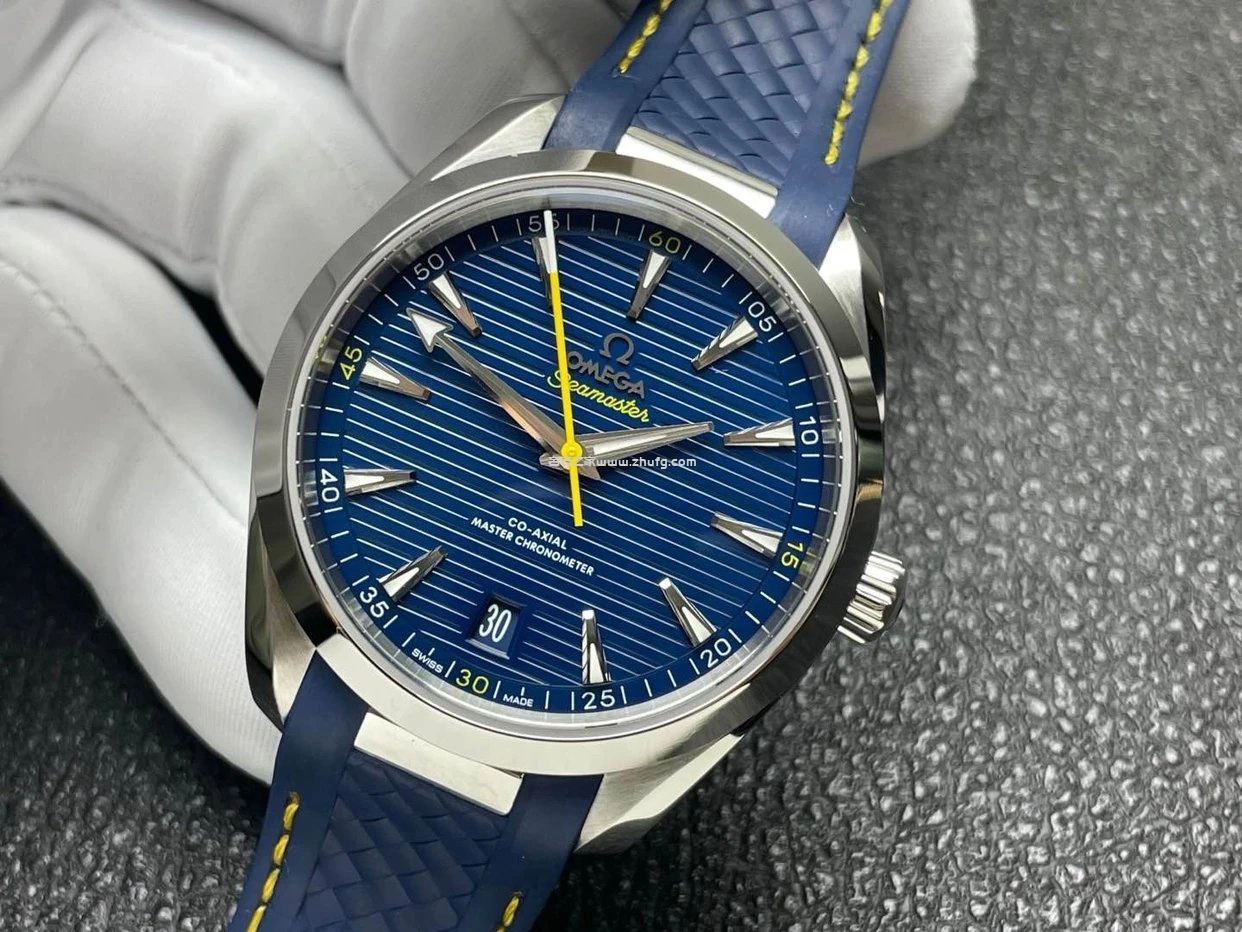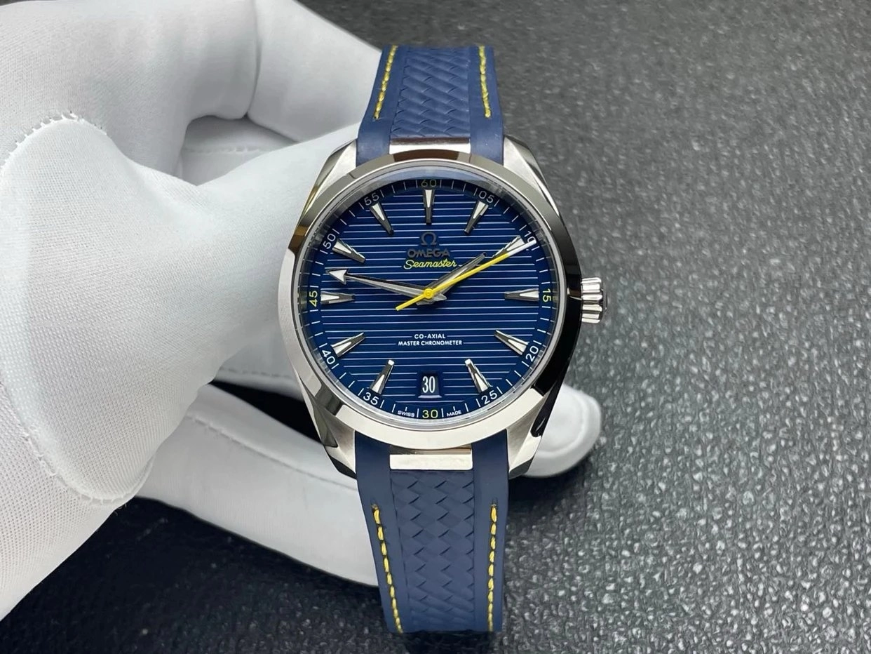 這款 歐米茄海馬 Aqua Terra 150米 高爾夫藍盤腕錶,由 VS廠 精準復刻,採用與正品一致的 8900一體機芯結構,走時穩定且具備高防磁性能。藍色橫紋面盤搭配黃色秒針與黃線氟橡膠錶帶,充滿運動活力。錶殼直徑41毫米,藍寶石鏡面清晰透亮,背透可見機芯打磨細節。整體質感與正品高度接近,是目前市面上品質極高的1:1超級復刻款。