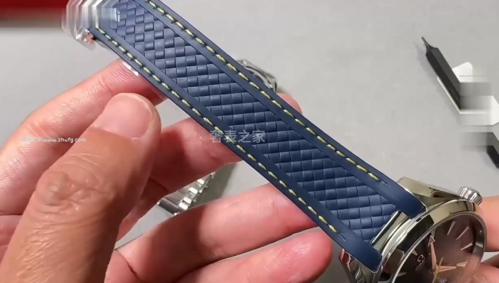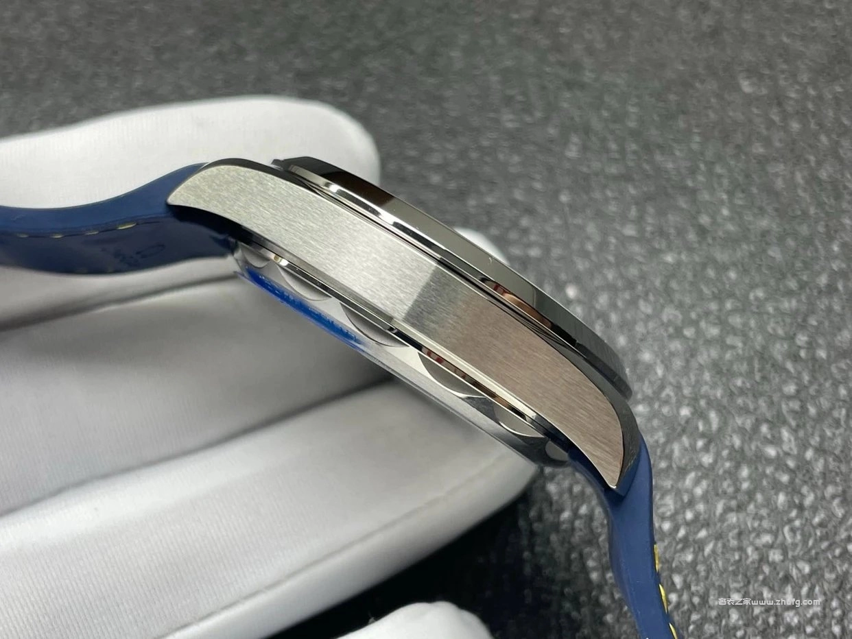 表殼的拉絲處理非常細緻,原裝的折疊扣與膠帶的質感相當不錯,佩戴起來柔軟舒適,車線整齊,背面也做出了與原裝一致的波浪紋理,整體貼合度非常好。