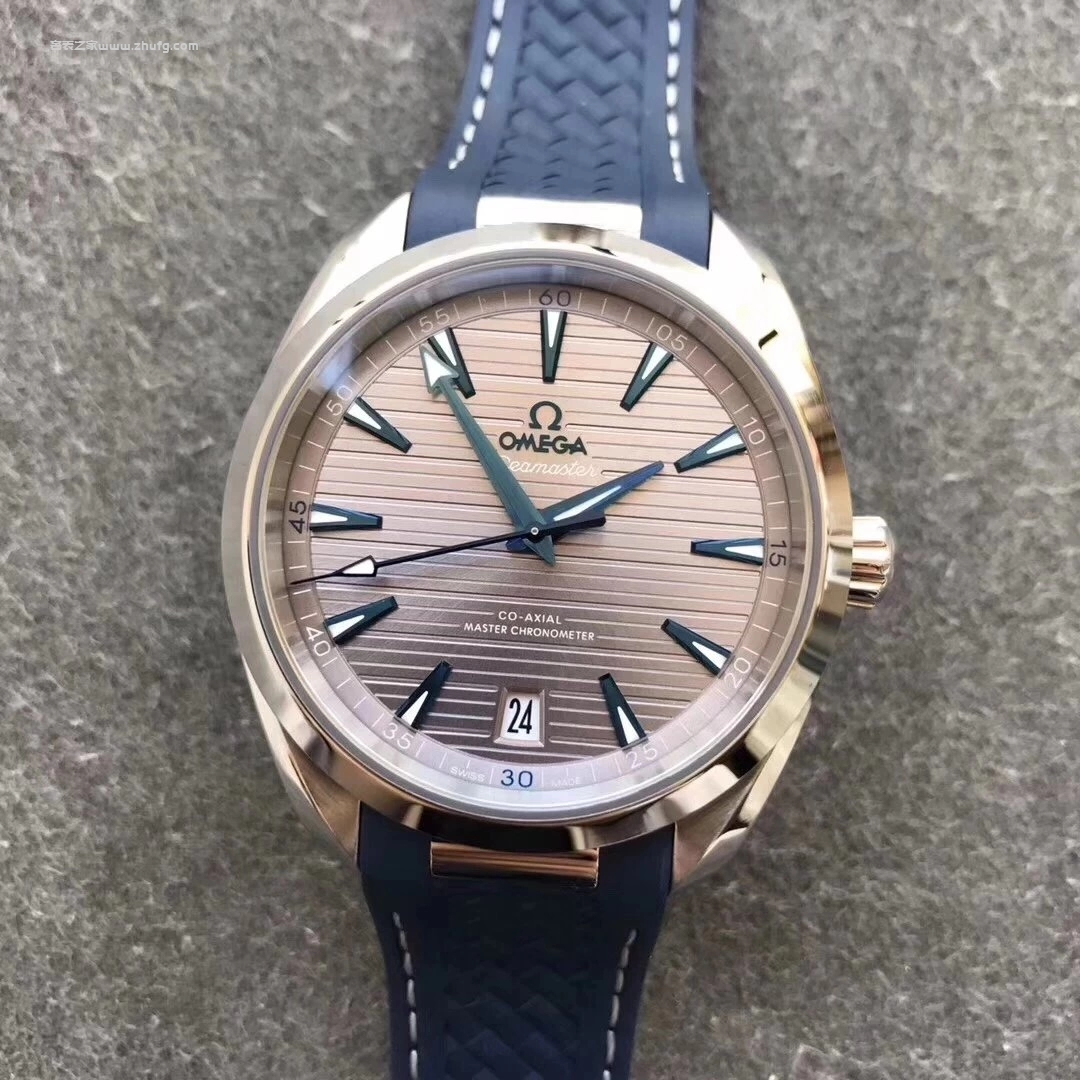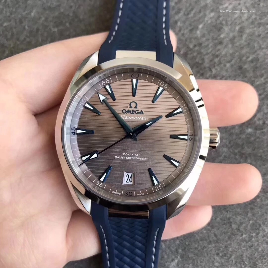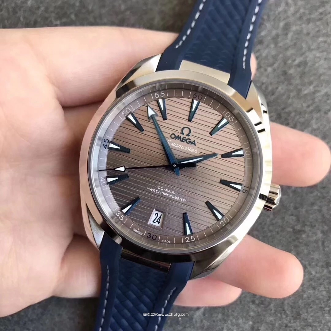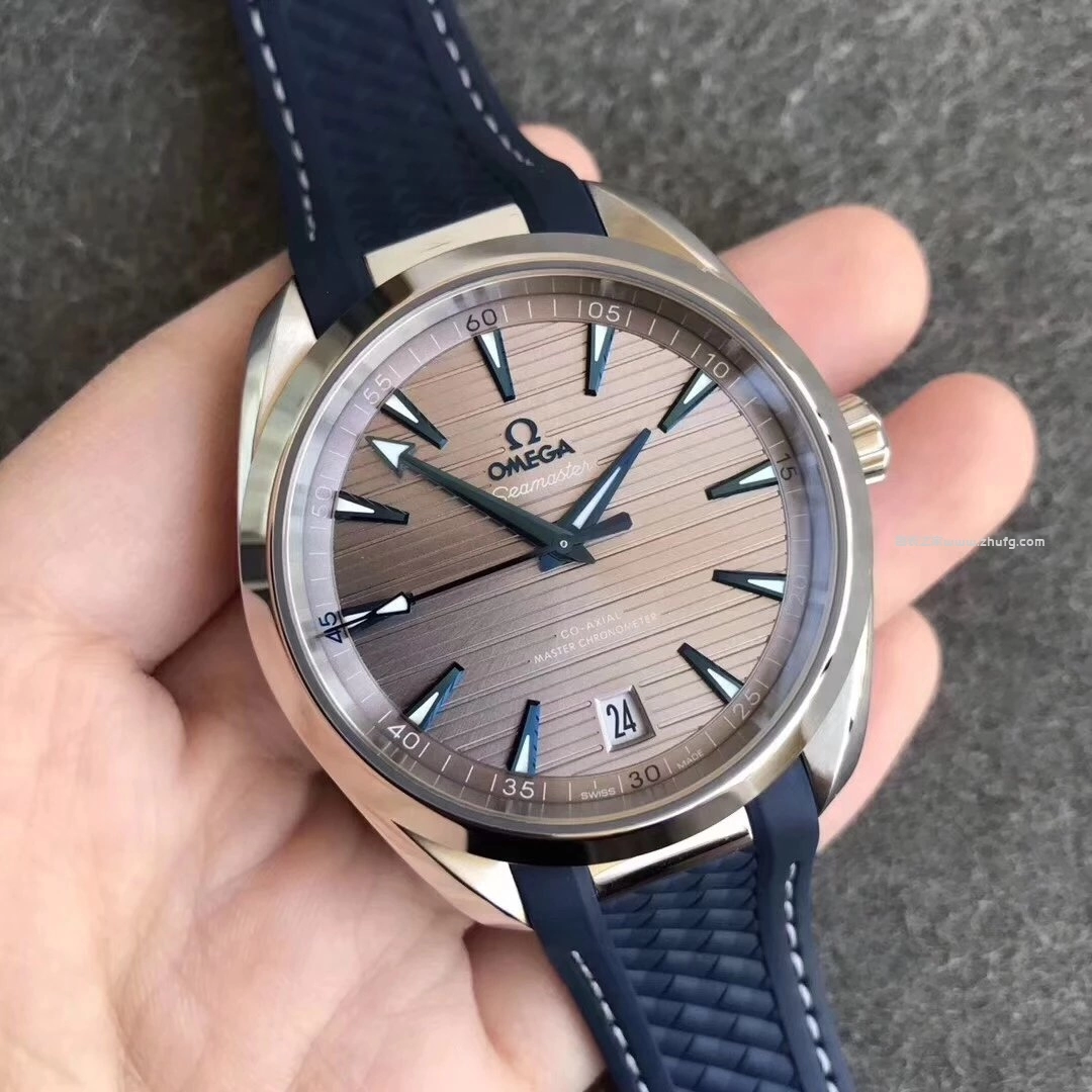 VS廠出品的歐米茄海馬150米Aqua Terra系列,型號220.12.41.21.06.001,採用與正品一致的41毫米表徑設計,搭載穩定的8900同軸擒縱自動機芯。灰色橫紋表盤配藍色指針與刻度,層次感極佳,質感細膩。藍色橡膠錶帶佩戴舒適,日常防水表現優秀,是一款兼具運動與商務氣質的高端復刻款式。**