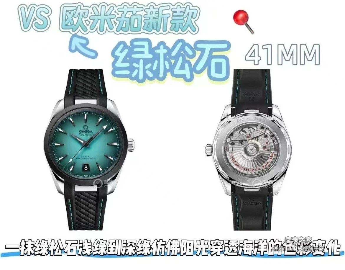 VS廠推出歐米茄 2025 新款 Seamaster 綠松石配色腕錶,錶徑 41mm,整體比例貼近原廠,佩戴舒適自然。