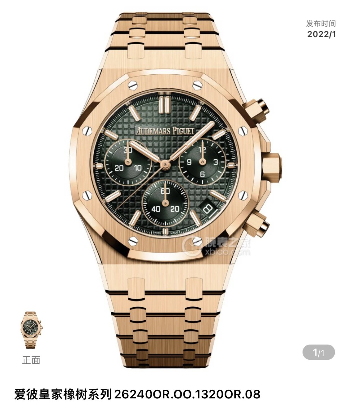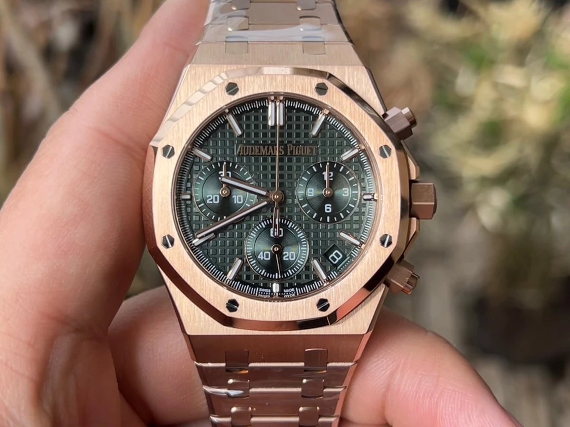 愛彼26240OR皇家橡樹41mm綠面玫瑰金計時復刻手錶