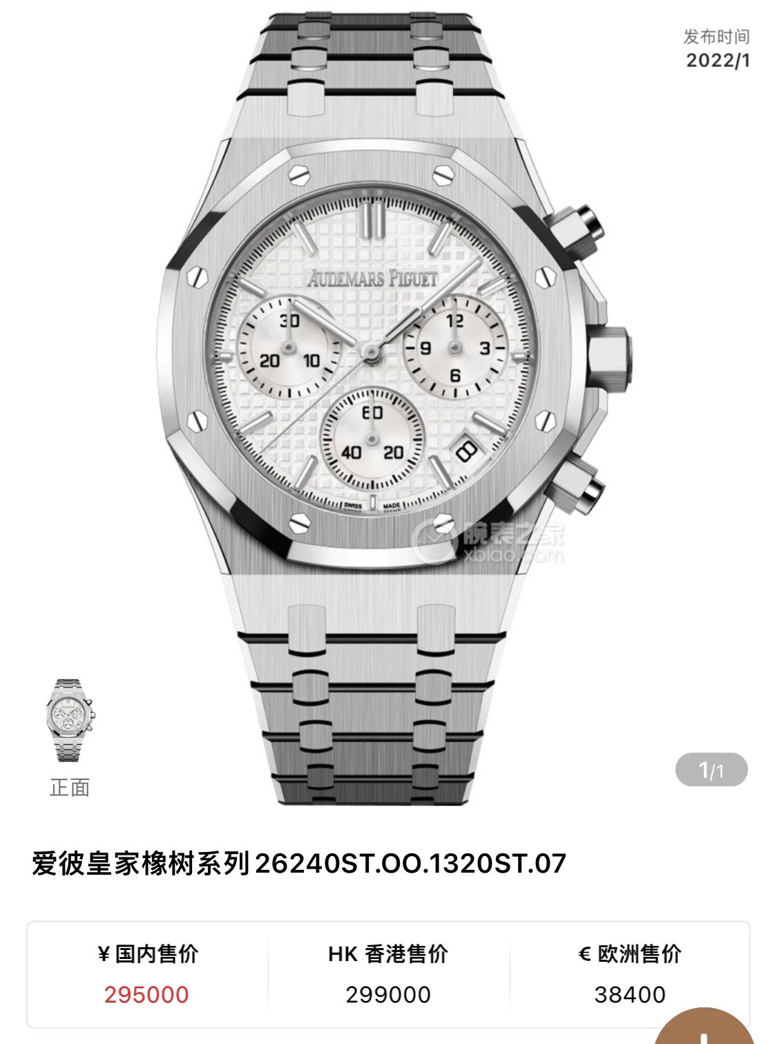 愛彼皇家橡樹26240ST白面計時超級復刻
