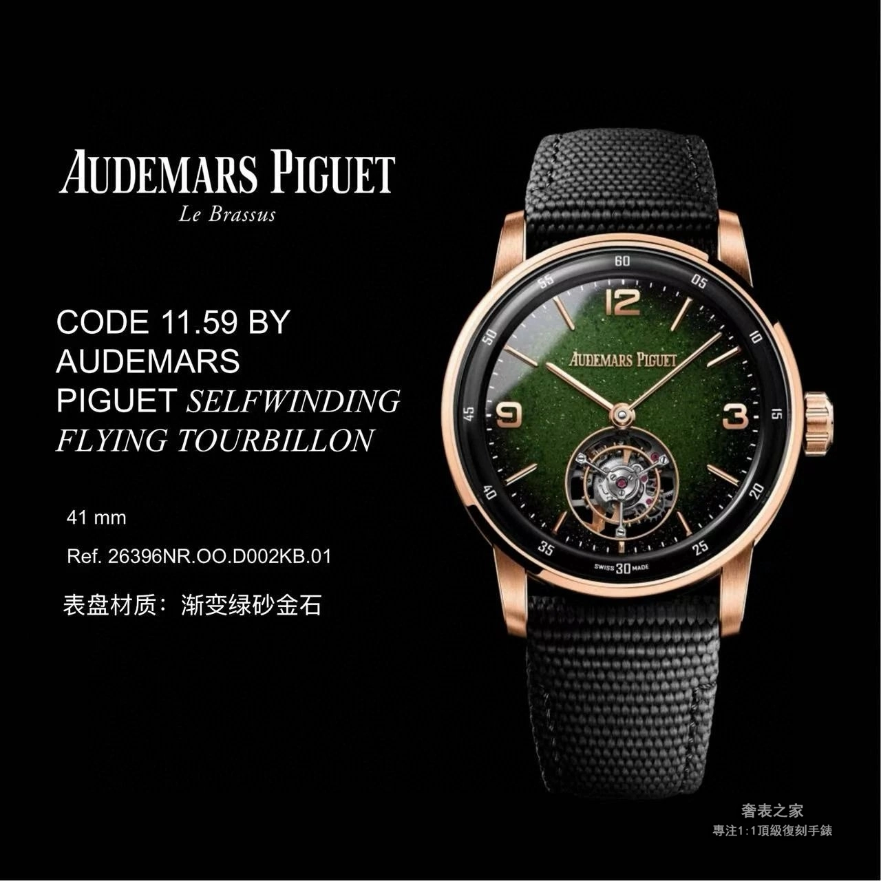 愛彼 Code 11.59 26396NR.OO.D002KB.01 飛行陀飛輪 砂金石琺瑯 高端復刻