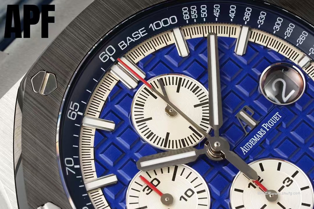 全新升級「夏日爆款」愛彼皇家橡樹離岸型26400系列44Mm腕表 秒殺市面上所有版本「封頂之作 杜絕一眼假」在原有的基礎上 潛心研發 突破壁壘 「打破原裝封鎖技術,同步原裝獨家計時碼表款可松動頭粒」使上手最大程度貼合手腕,大大提高了佩戴的舒適 同時也杜絕一眼假的尷尬處境。APF廠真正做到從每一個喜歡手⌚️的表友角度考慮 1. 表殼與圈口的選料,使用進口的氧化鋯,無需任何顏料,以超高的壓力與超高的溫度鍛造,形成超高密度的彩色陶瓷 2.采用最新CNC級別的打磨技術,將整個表殼的個個角度完美處理,3.每顆六角螺絲都與表框處於同一平面上,不接受一絲一毫的凸顯與凹陷,真正詮釋了何為頂級復刻藝術 4.表盤以愛彼經典的大格紋為背景,層次分明的方格排列,經過完美打磨,將匠人的工藝體現的淋漓盡致 5.鏡面采用雙面藍寶石鏡片,天然橡膠皮帶,6.機芯采用原裝3126的計時機芯,十二位的小秒,6點鐘位和九點位的12小時計時與30分鐘計時,完美的還原了原版的所有功能,每塊手表APF廠都經過人工QC確保機芯的穩定性,真正做到無可挑剔歡迎各位 表友鑒賞