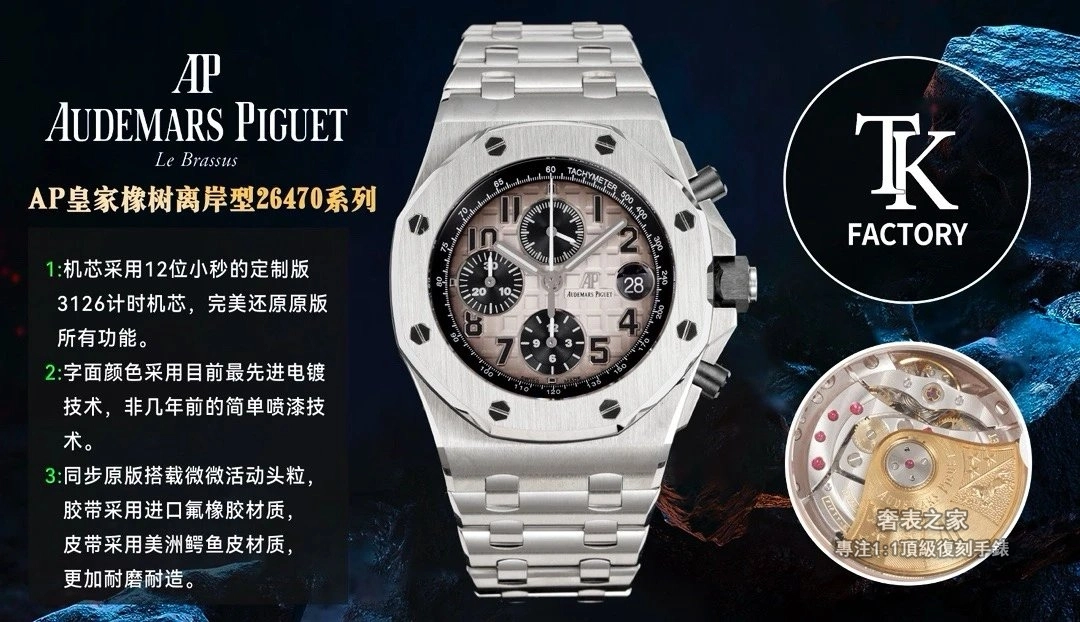 愛彼 皇家橡樹離岸型 26470PT.OO.1000PT.01 計時腕錶 TK Factory 高端復刻