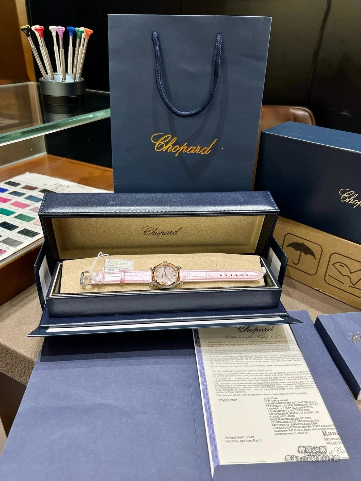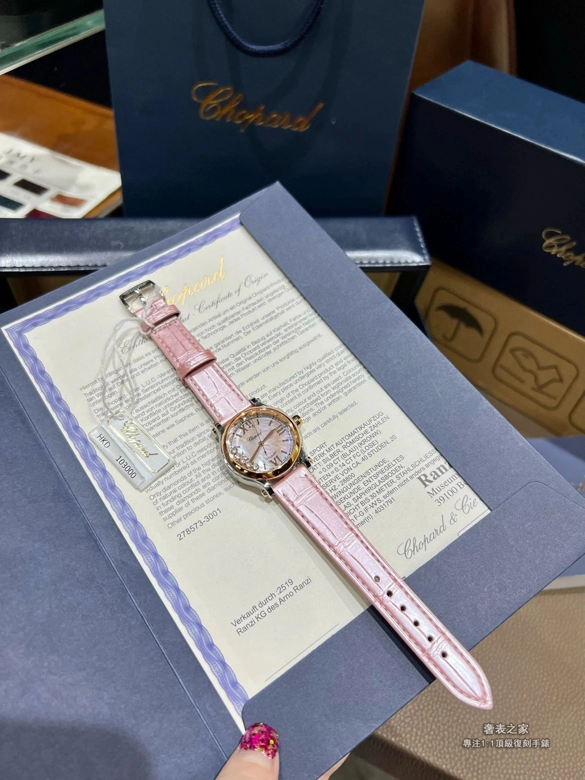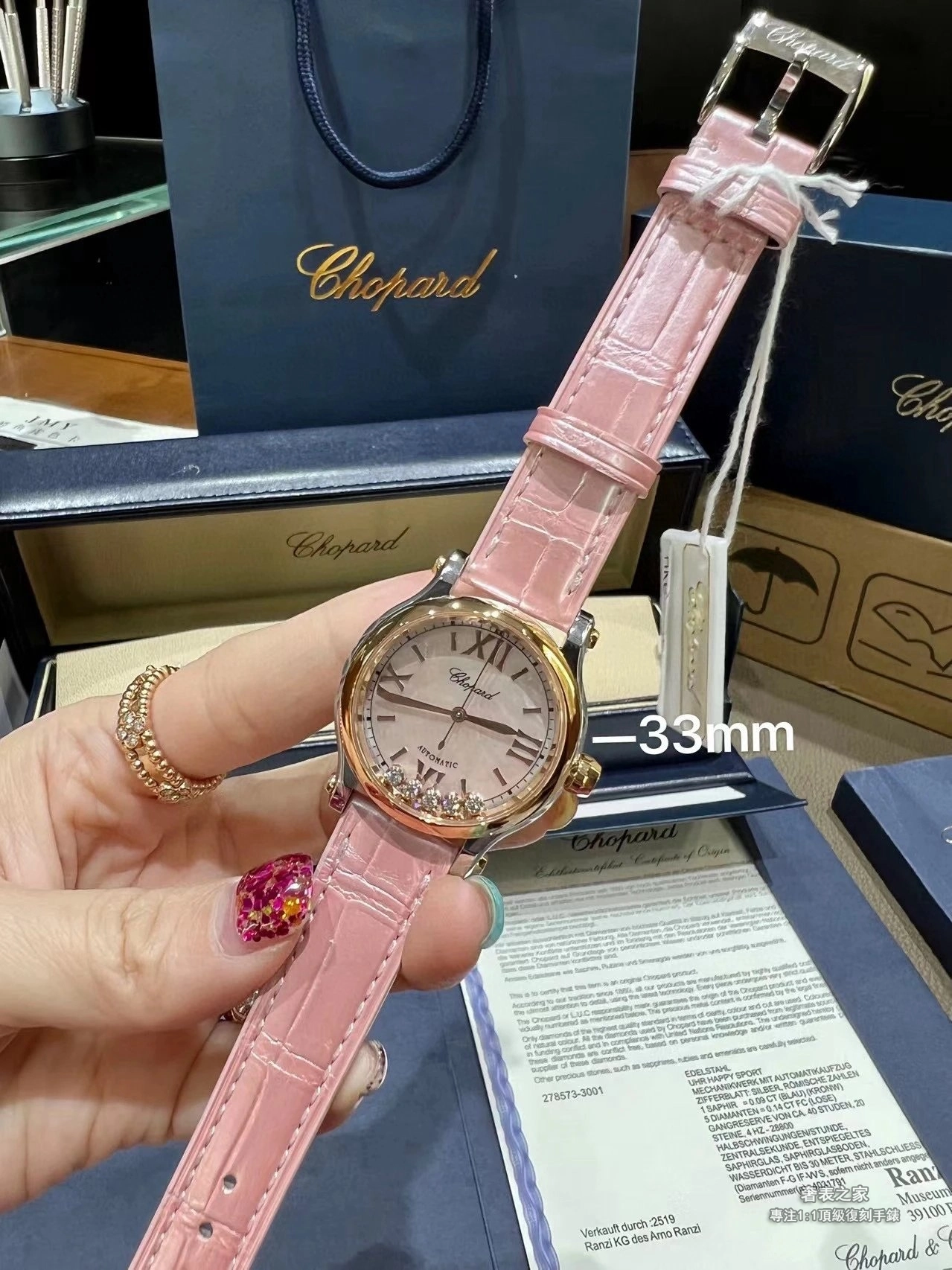 蕭邦 Happy Sport 278573-6011 30mm 櫻花粉 舞動鑽石 1:1 高端復刻