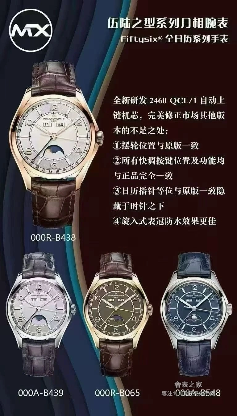 江詩丹頓 FIFTYSIX 4000E/000A-B439 全日曆 月相 MX 廠 高仿