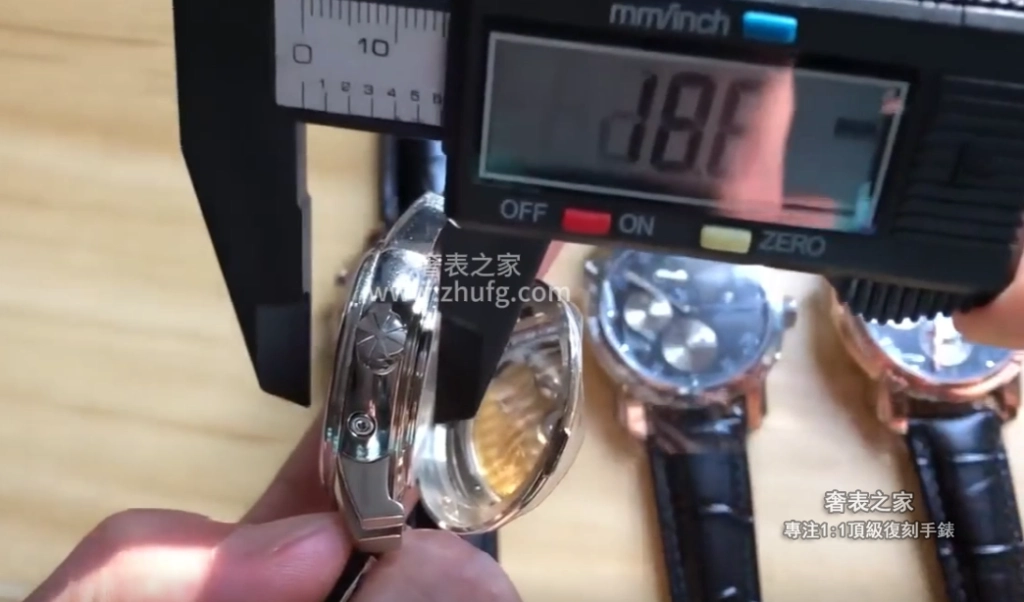 原裝厚度約 11 毫米,復刻版本在未打開後蓋時約 11 毫米,若連後底蓋一起測量,厚度約 12.2 毫米,比原裝厚約 1 毫米。