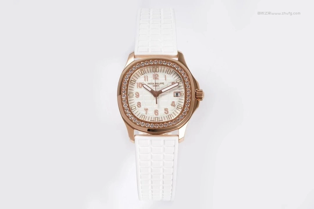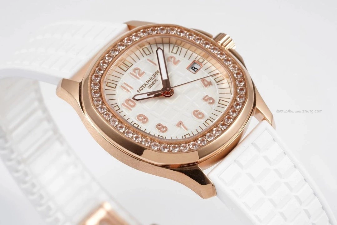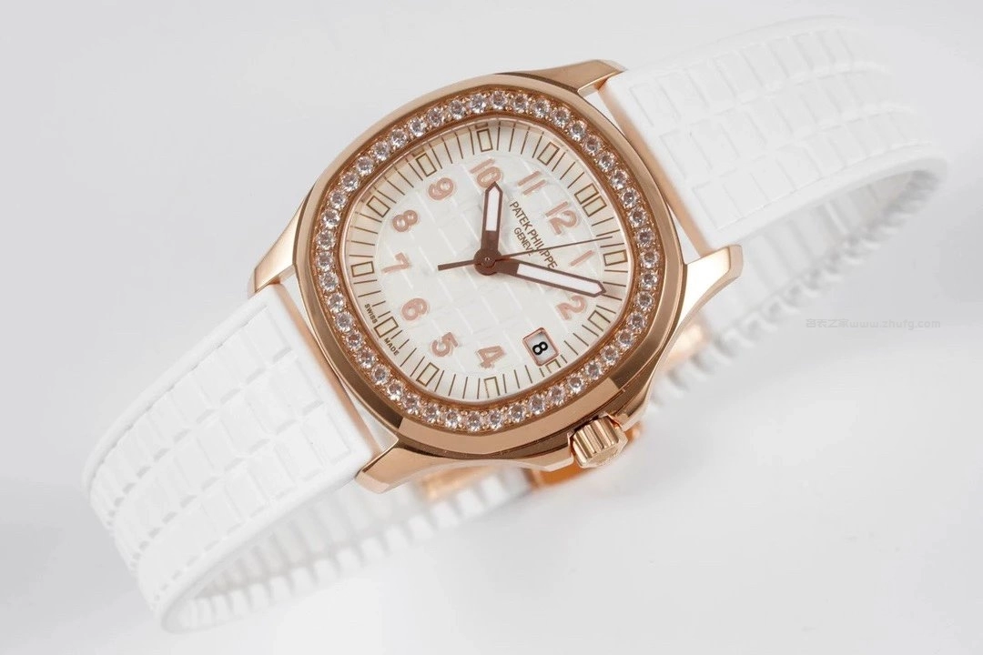 百達翡麗 AQUANAUT Luce 系列 5067R 女士腕錶,採用玫瑰金錶殼搭配鑽石錶圈,白色橡膠錶帶,優雅時尚。搭載瑞士石英機芯,錶徑35.6毫米,日常佩戴舒適百搭。