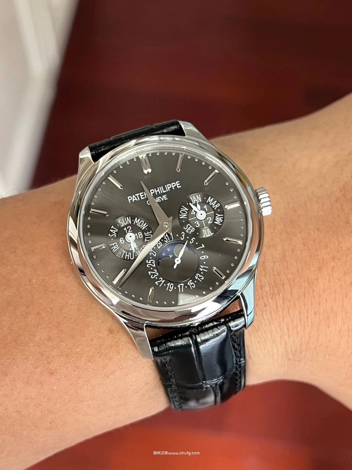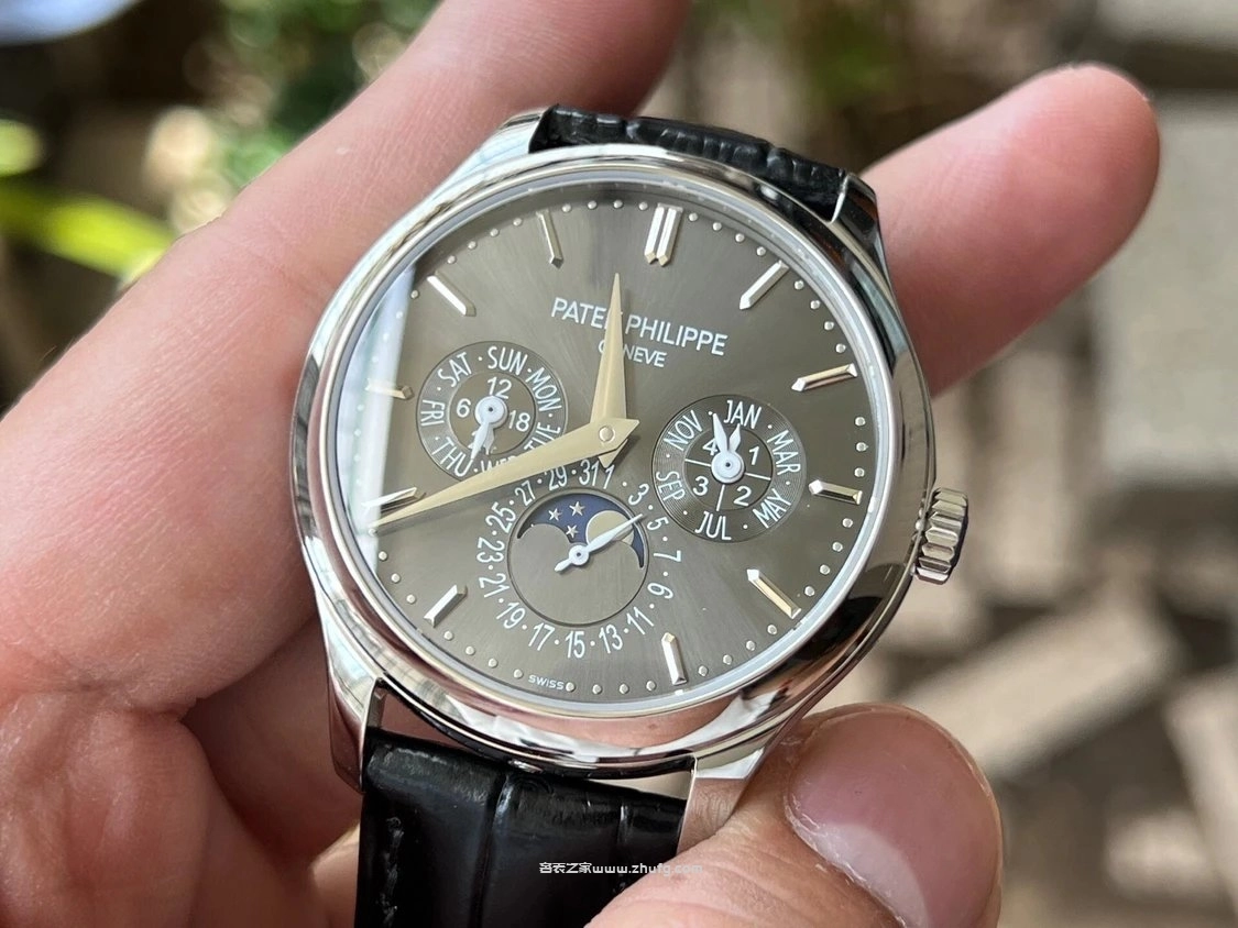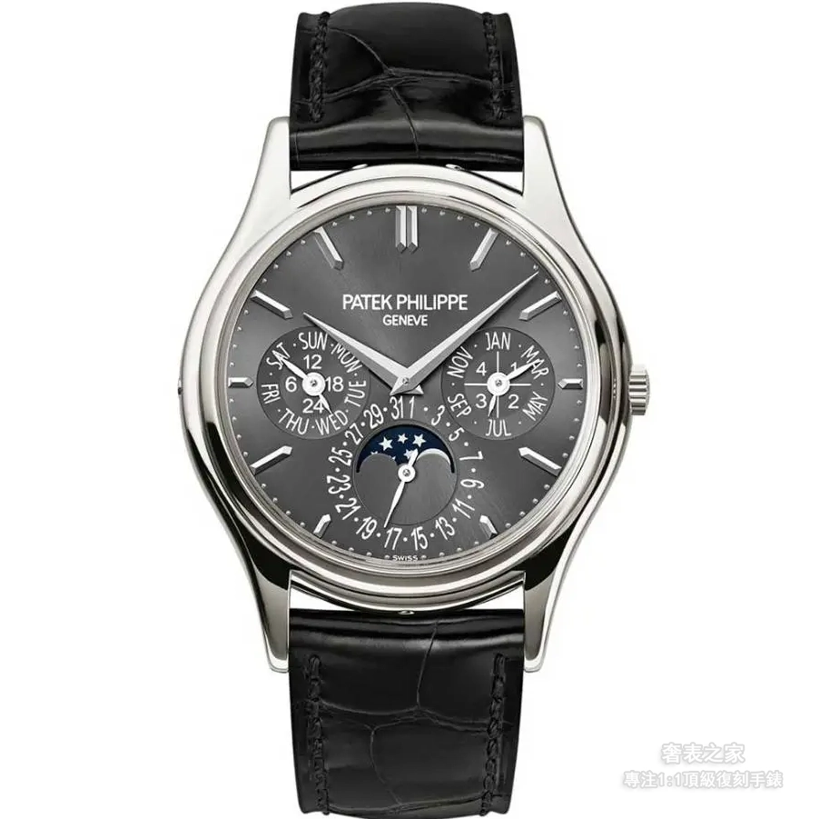 3K廠新品 百達翡麗超級複雜功能時計 5327/5140 系列腕錶,直徑 40mm,佈局典雅大方,功能豐富卻不顯繁雜。錶盤採用日暉紋搭配金質立體寶璣數字刻度與柳葉指針,展現高雅氣質。