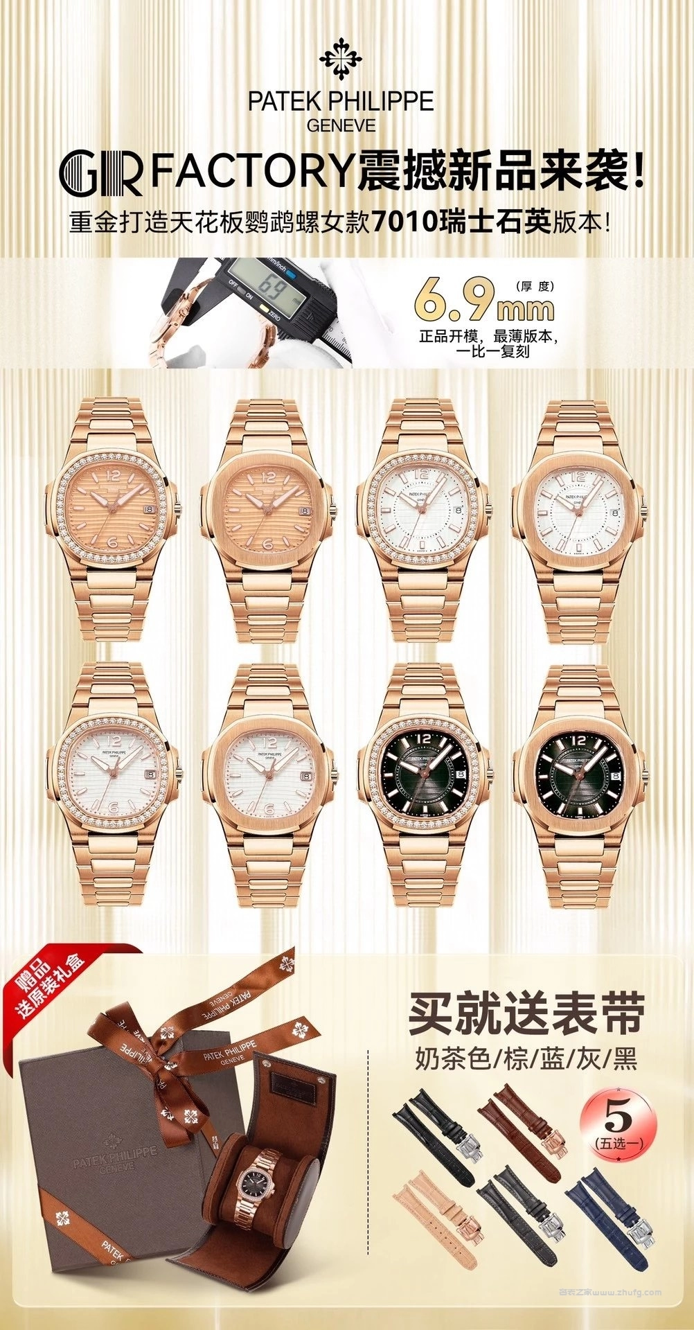 百達翡麗 鸚鵡螺 7010/1R-001 玫瑰金 鑽圈 GR廠 瑞士石英 32mm