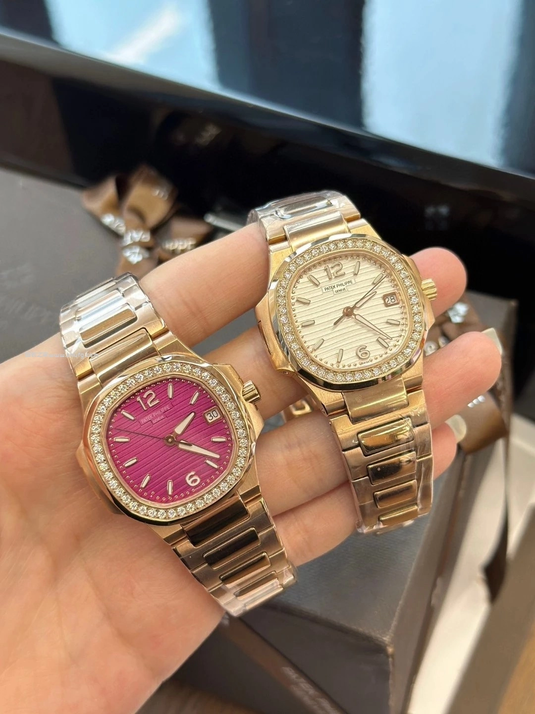 百達翡麗 鹦鹉螺 7010R 女士腕錶 粉紅面 鑽圈 GR版 瑞士石英 32mm