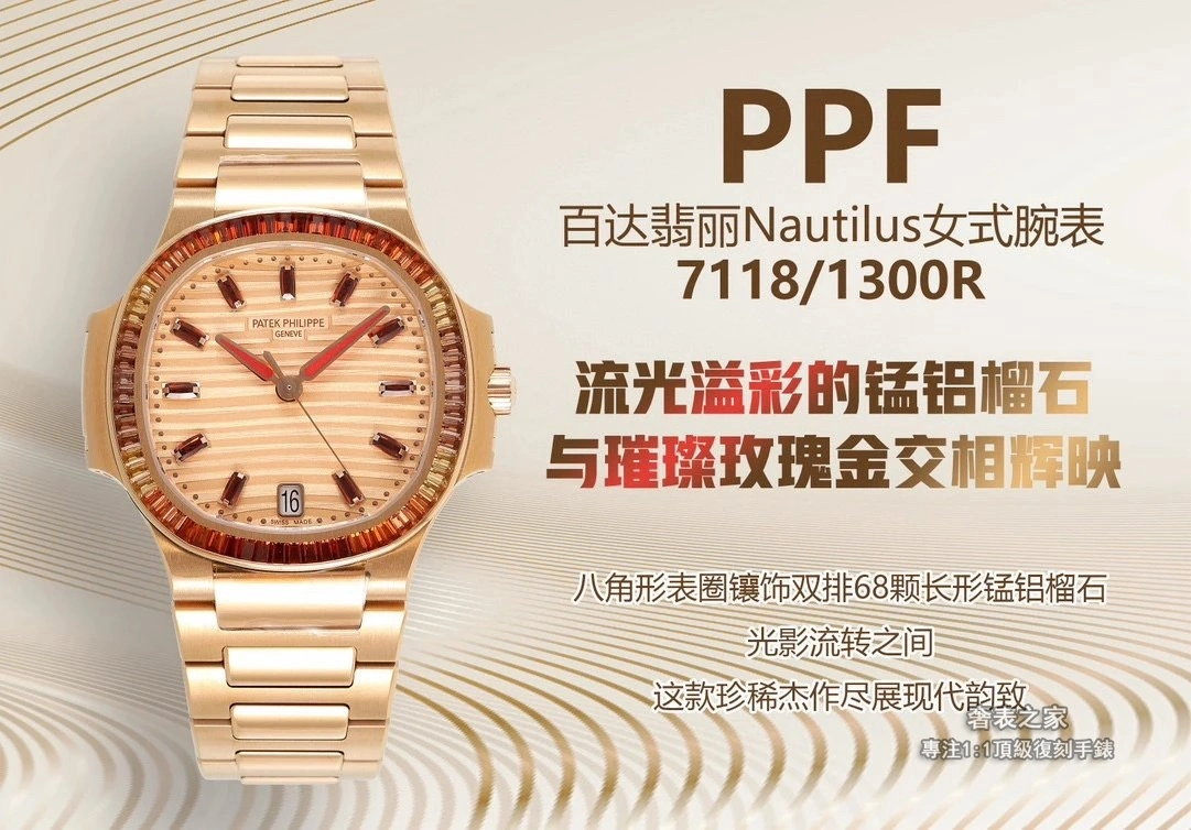 百達翡麗 Nautilus 7118/1300R 玫瑰金 錳鋁榴石 PPF 頂級復刻