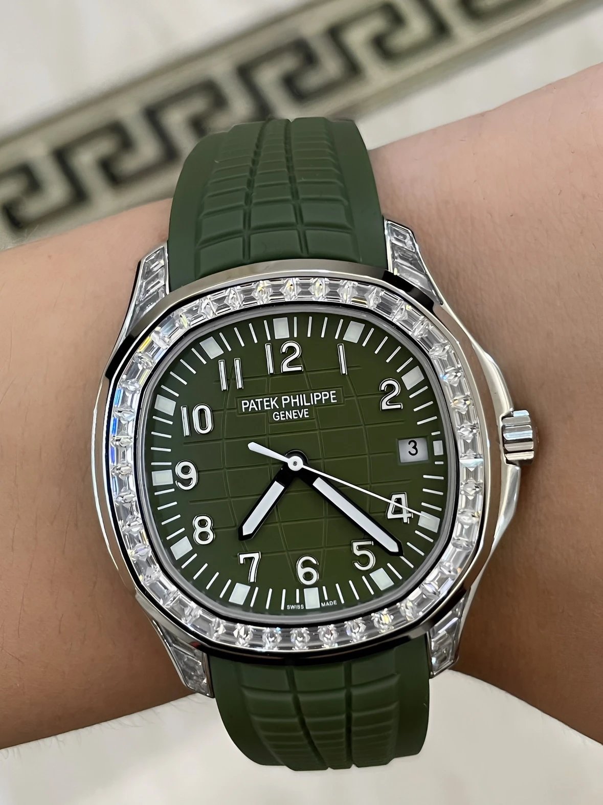 復刻表百達翡麗5167/300G綠盤 白金 T方莫桑鑽