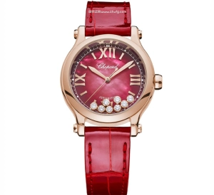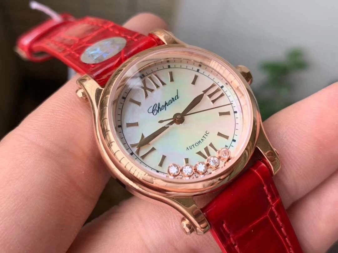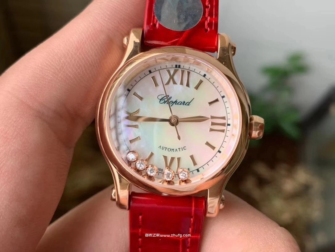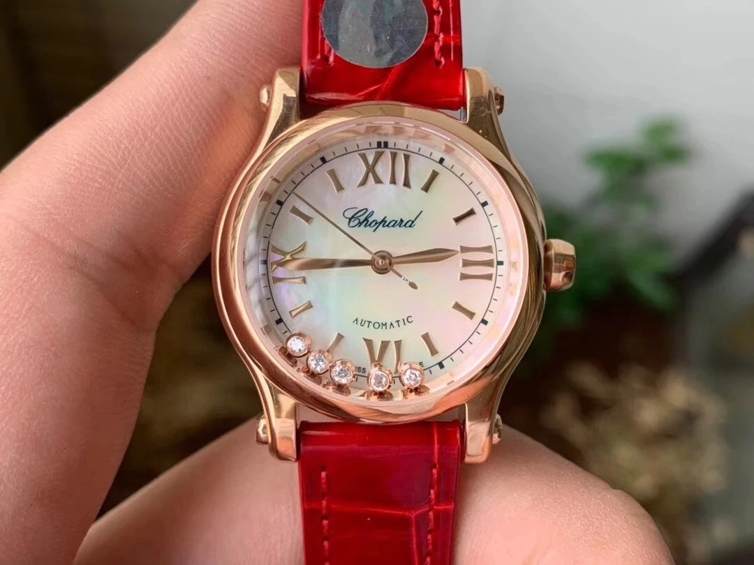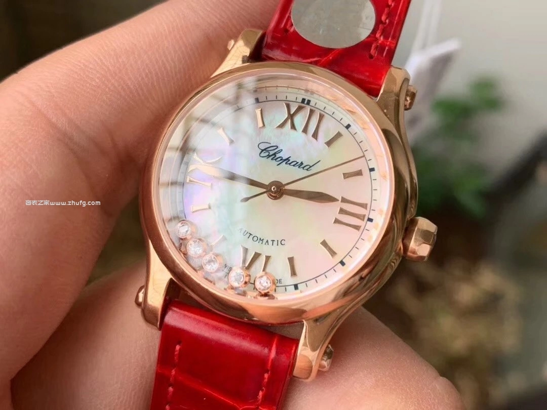 蕭邦快樂鑽系列5鉆自動機械女錶 貝母盤玫瑰金皮帶 1:1超級復刻