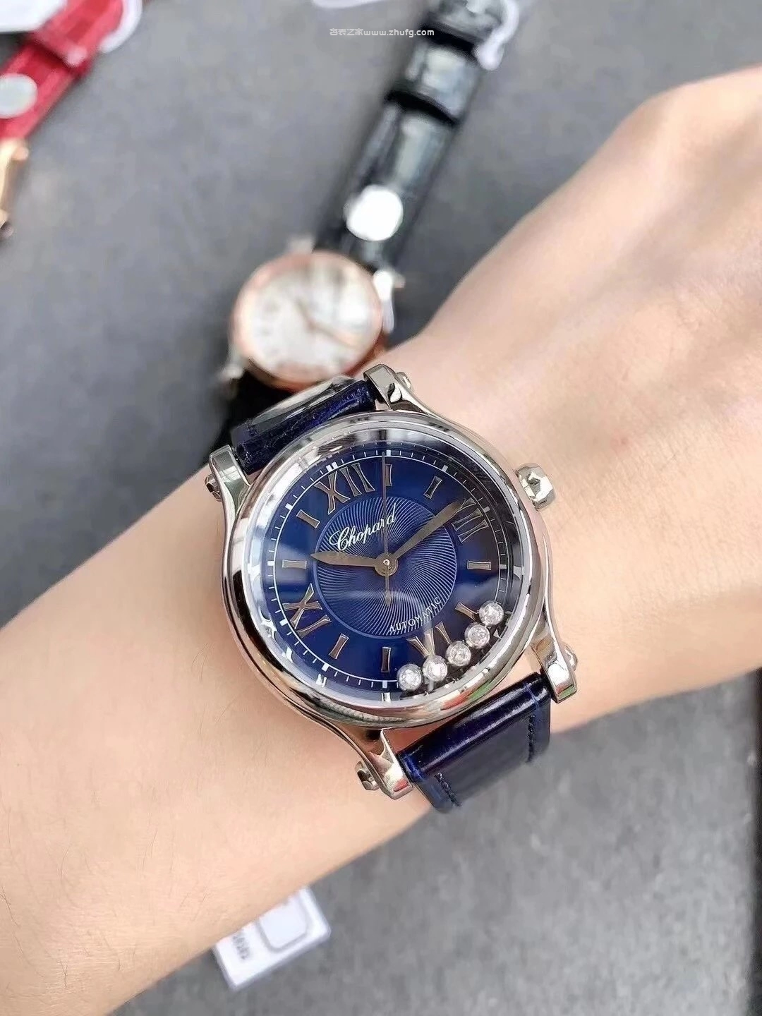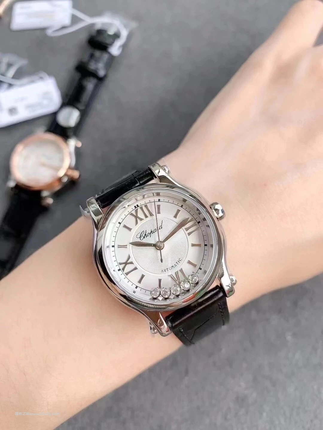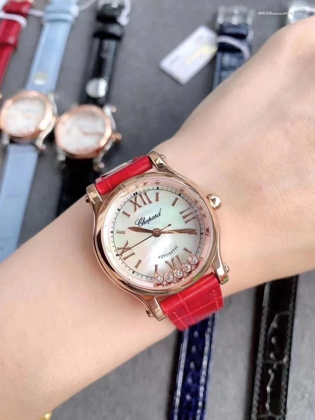 蕭邦快樂鑽系列5鉆自動機械女錶 貝母盤玫瑰金皮帶 1:1超級復刻