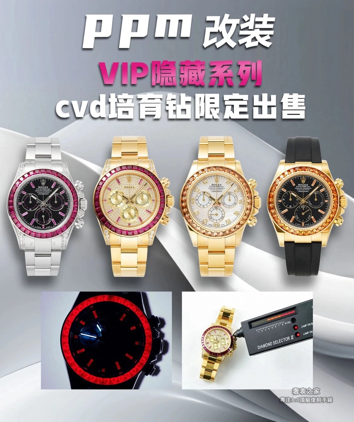 勞力士 Daytona 4130 PPM 定制改裝 CVD 培育鑽 隱藏款 復刻