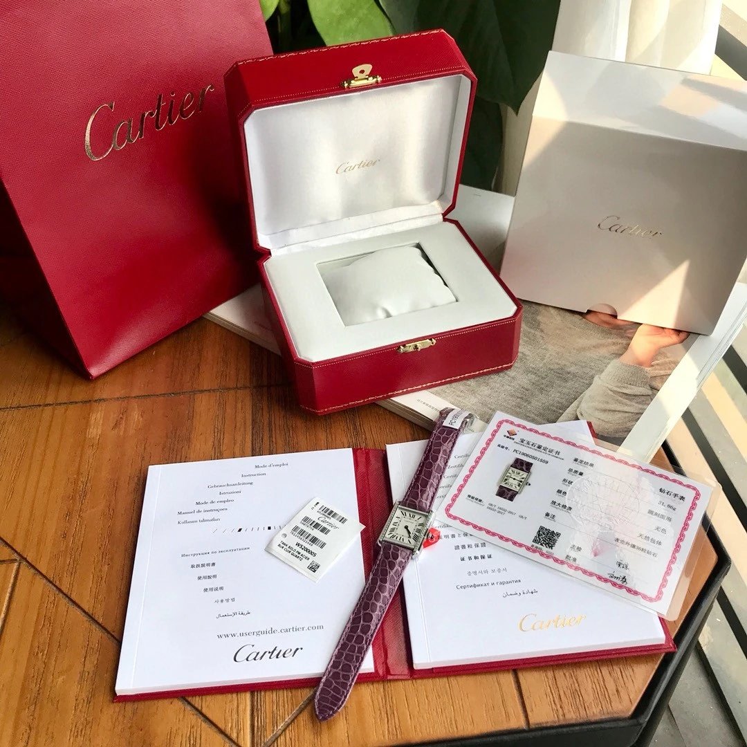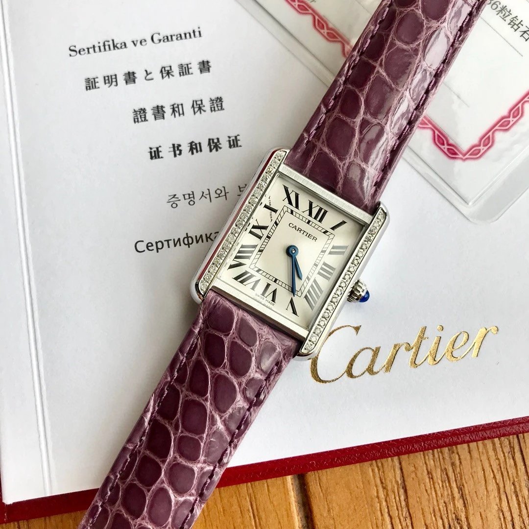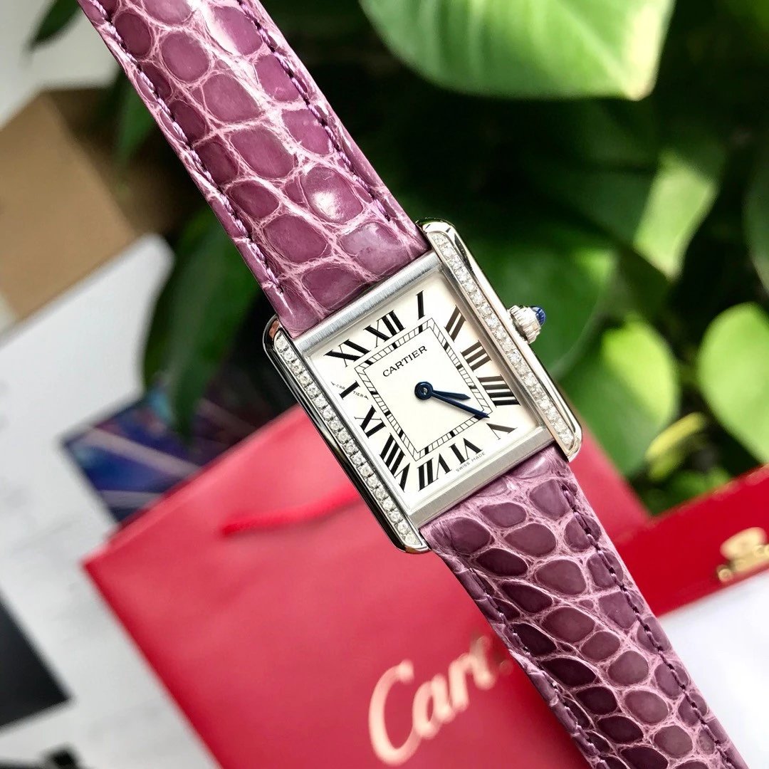 卡地亞Tank真鑽小號31x24mm鱷魚皮瑞士石英高端版