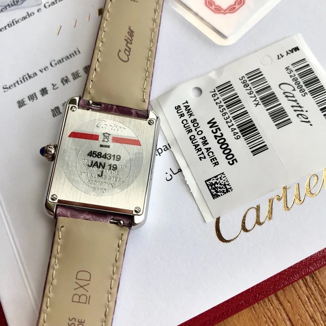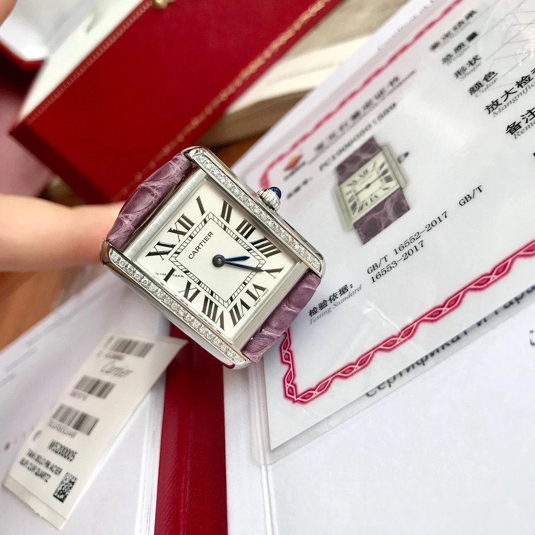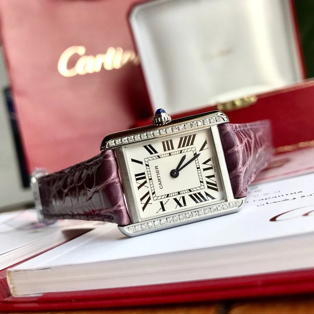 卡地亞Tank真鑽小號31x24mm鱷魚皮瑞士石英高端版