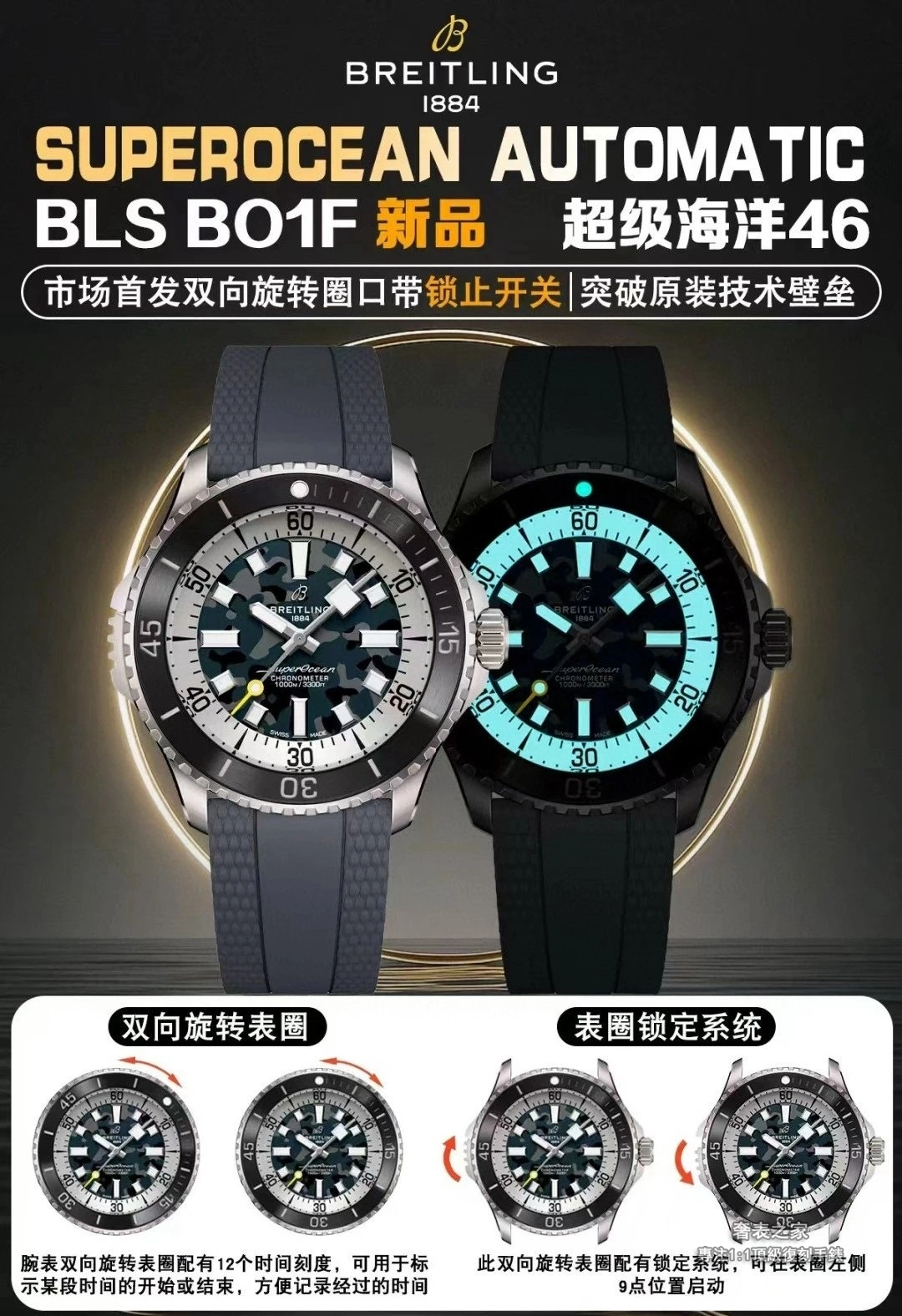 百年靈 超級海洋 E10379351B1S1 46mm 自動 潛水錶 BLS V2 高仿