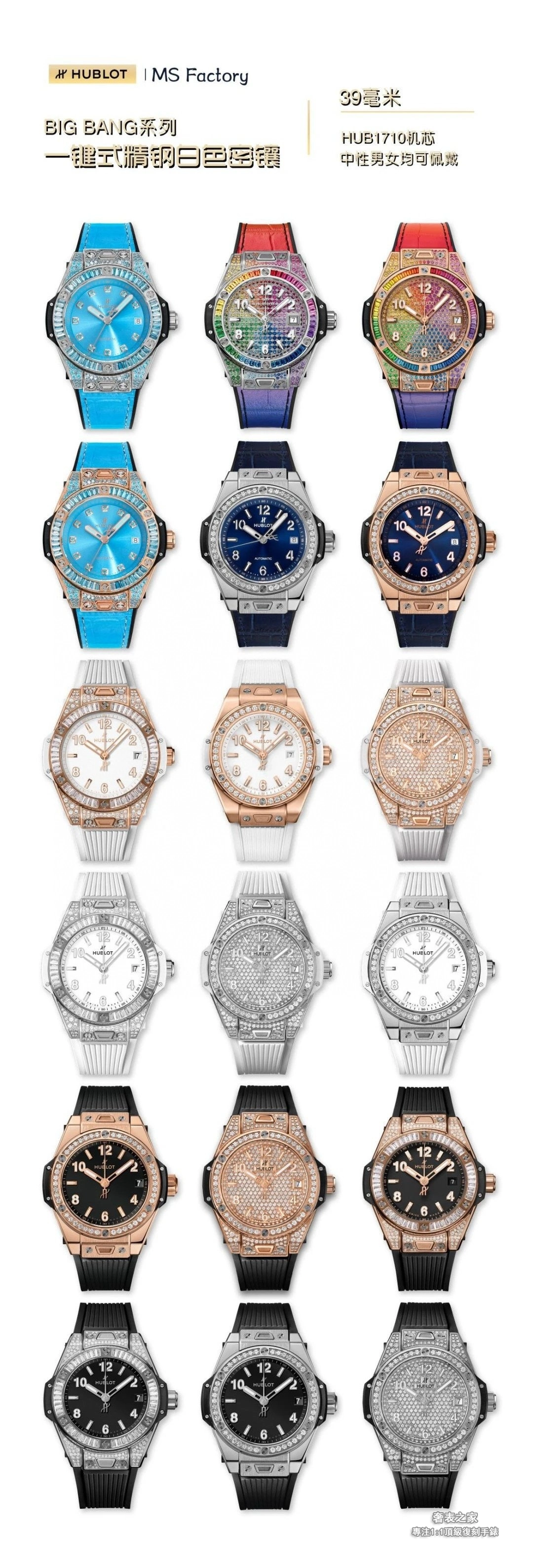 宇舶 Big Bang One Click 39mm 彩虹鑲鑽 女款 3MS廠 高端復刻