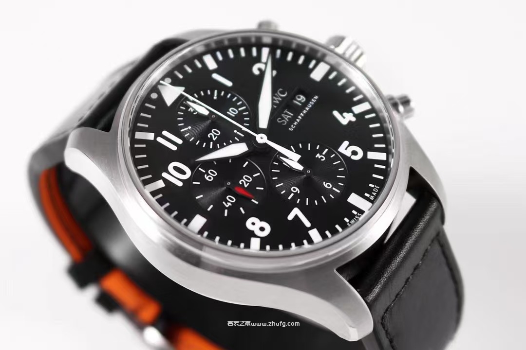 ZF經典臻品升級V2版馳騁高空 分秒必「真」】ZF出品IWC3777飛行員計時系列,機芯同步原裝,表針尾部微微彎曲,雙面防眩暈藍色鍍膜。成就此非凡經典。【成熟做工】腕表尺寸43mmX15mm。表殼分為兩件套,圈口和中殼為一體。難處在於中殼和圈口交接之處的直角轉折打磨(需要大量的手工作業)。經過時光的淘洗,仿真度穩健,做工成熟。線條清晰而富有立體感。原汁原味的還原了該系列堅韌不拔的卓越品質。【機芯】采用TOP級上海7750機芯,不僅結構同步原裝,上鏈,調歷,操作指針和計時功能均和原裝完全吻合。【精彩細節】1.ZF沿襲萬國表的傳統技藝,采用雙層淺藍色防眩暈鍍膜。2.分針秒針的尾部微微彎曲,細節吻合正品。