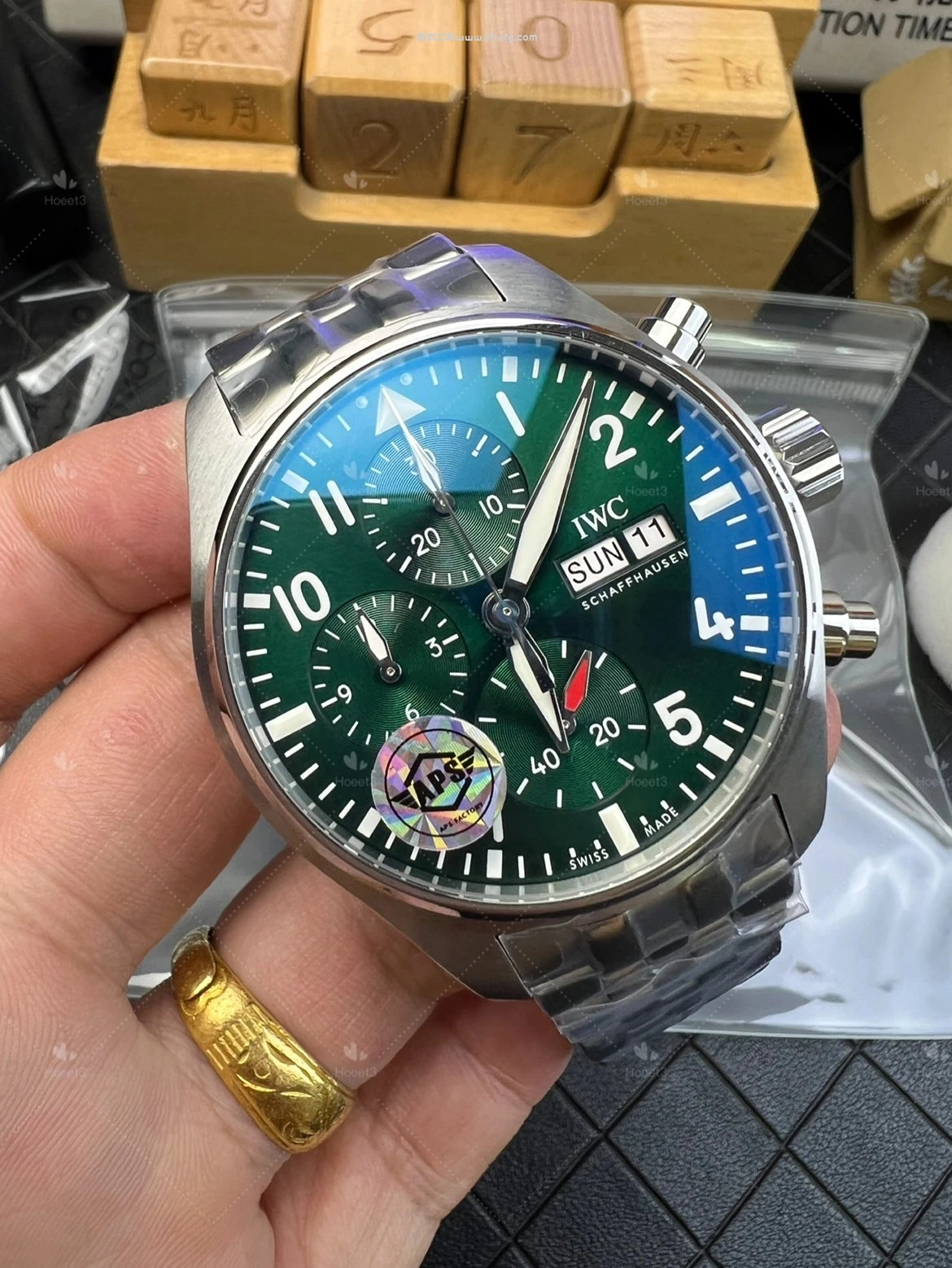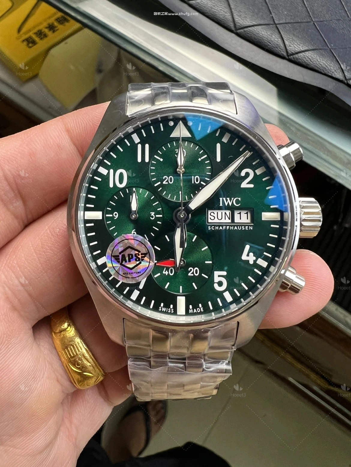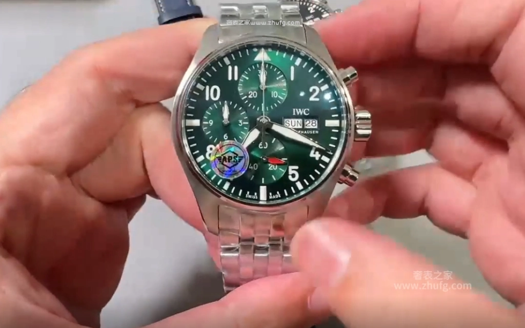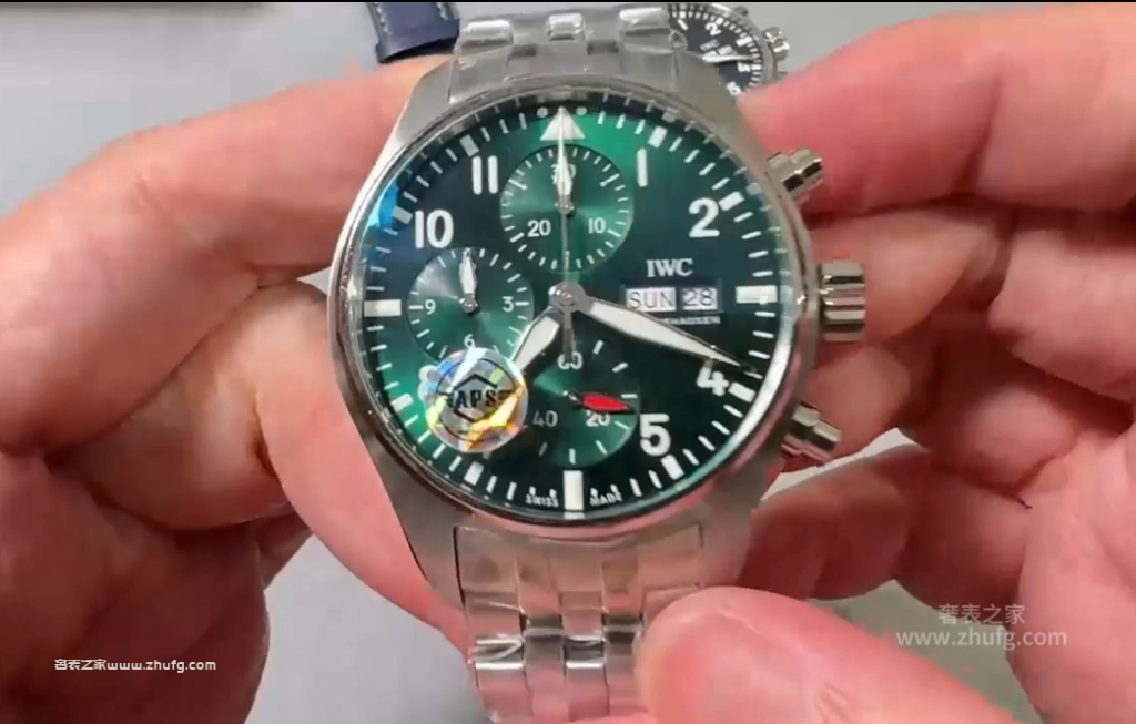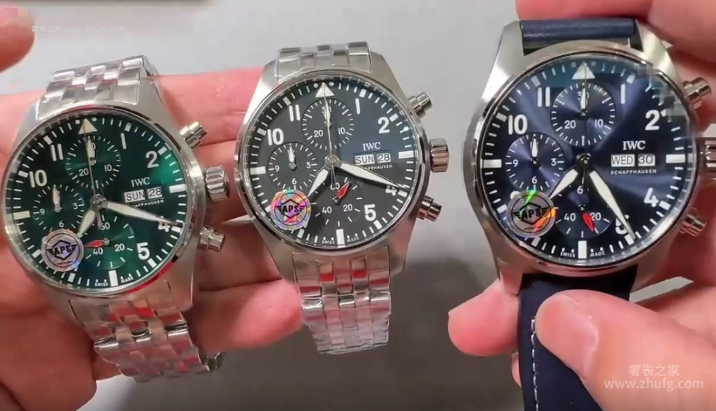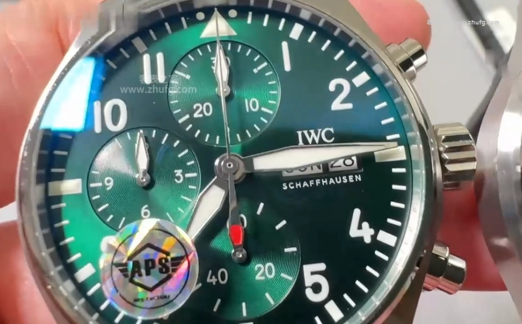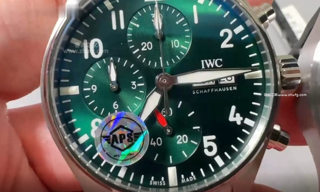 这期奢表之家小林給大家介紹的是 APS 上推出的萬國飛行員系列,新款的萬國飛機41毫米的。然後這款飛機呢要好好跟大家聊一下,之前給大家推薦的都是43毫米的,原單廠或者是 ZF廠 ,兩個都是對版的。然後前兩年也有人做這個41毫米的飛機,但我從來沒給大家推薦過,為什麼呢?因為它這個機芯是做的不對的。大家仔細看啊,這個 APS檔 ,它這個秒針是對的,六點鐘的紅色秒針,看到了嗎?一直在走的這個秒針。然後前兩年其他工廠做的,它是把秒針的功能跟這個是用反的,知道嗎?因為機芯的限制,它是九點鐘在跳秒,它的這個紅色秒針是不動的,它這個一直走,所以一眼就能看出來。而且其他細節方面來說,也不是做的特別好,所以就一直沒給大家推薦過。現在這個 APS檔 推出這個41的,做的非常不錯,也是對版的功能,對版的機芯。