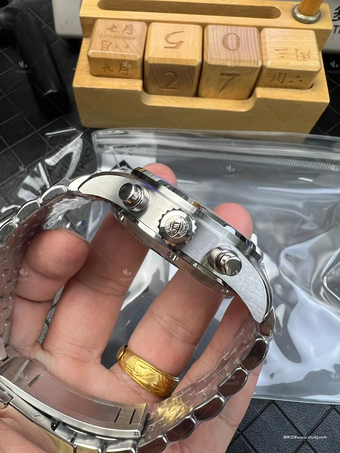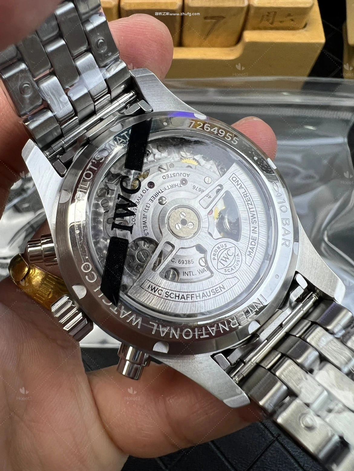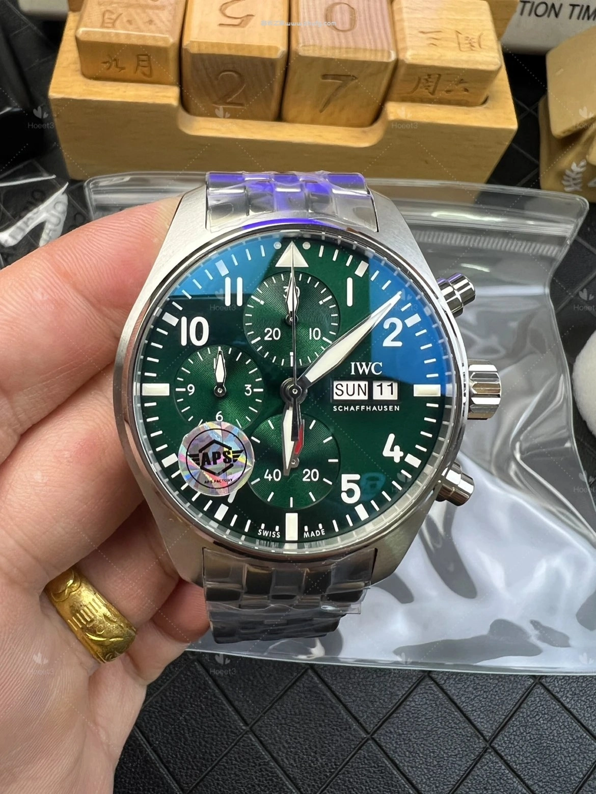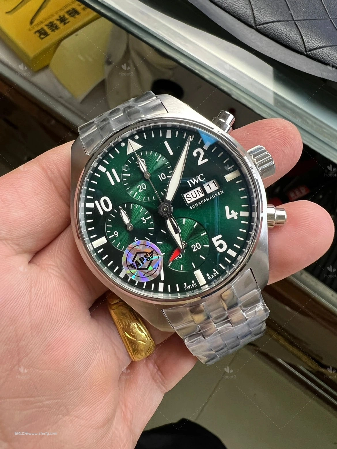 这期奢表之家小林給大家介紹的是 APS 上推出的萬國飛行員系列,新款的萬國飛機41毫米的。然後這款飛機呢要好好跟大家聊一下,之前給大家推薦的都是43毫米的,原單廠或者是 ZF廠 ,兩個都是對版的。然後前兩年也有人做這個41毫米的飛機,但我從來沒給大家推薦過,為什麼呢?因為它這個機芯是做的不對的。大家仔細看啊,這個 APS檔 ,它這個秒針是對的,六點鐘的紅色秒針,看到了嗎?一直在走的這個秒針。然後前兩年其他工廠做的,它是把秒針的功能跟這個是用反的,知道嗎?因為機芯的限制,它是九點鐘在跳秒,它的這個紅色秒針是不動的,它這個一直走,所以一眼就能看出來。而且其他細節方面來說,也不是做的特別好,所以就一直沒給大家推薦過。現在這個 APS檔 推出這個41的,做的非常不錯,也是對版的功能,對版的機芯。