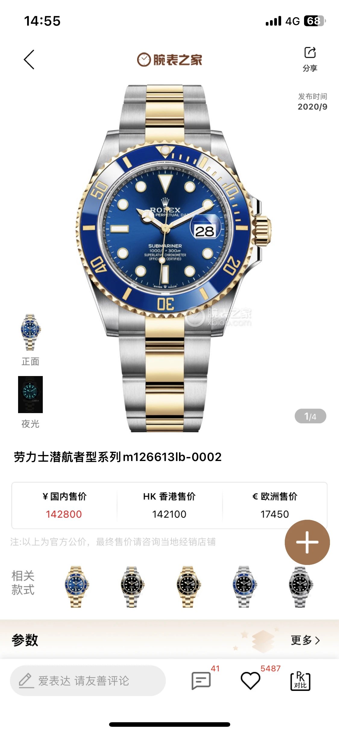 勞力士Rolex潛航者藍水鬼m126613lb-0002間金41MM VS廠復刻表