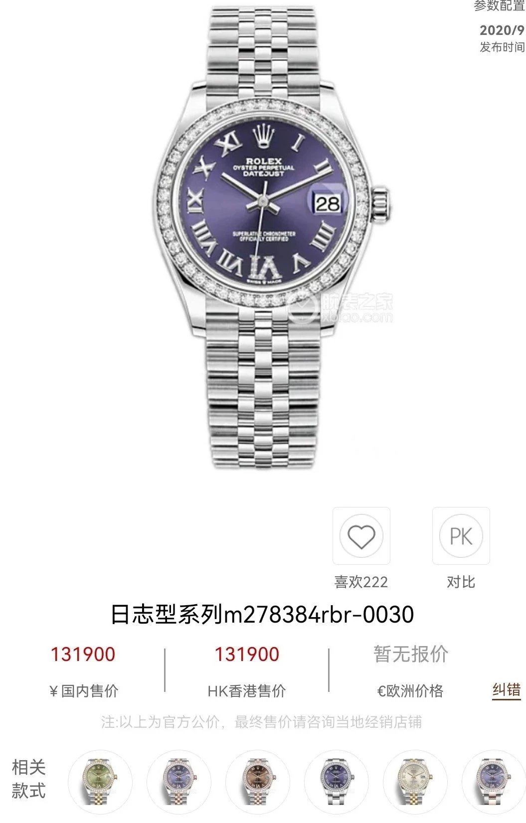 勞力士日誌型M278384RBR-0030鑲鑽女錶 1:1復刻手錶 31MM