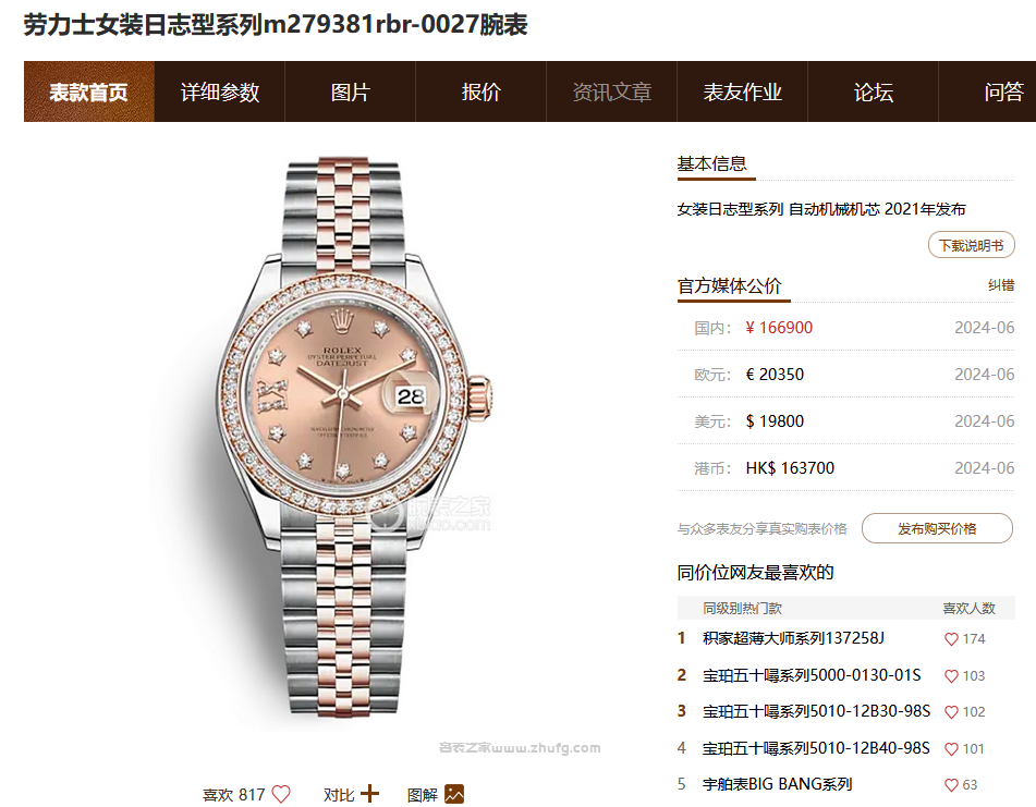 WF廠勞力士28MM日誌型系列m279381rbr-0027女士腕表