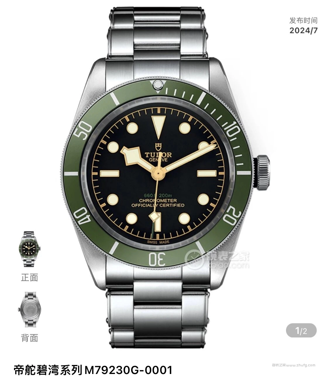 ZF帝陀 碧灣 M79230G-0001 綠圈 夜光 藍寶石 41mm 自動機械