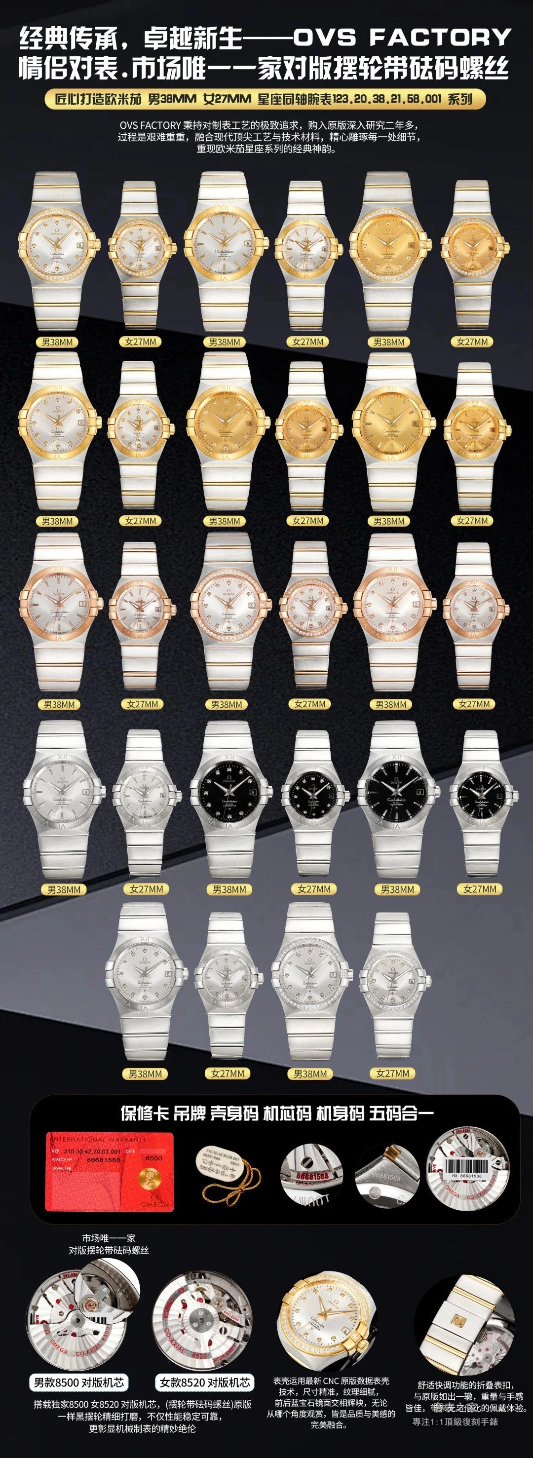 歐米茄 星座 情侶對錶 38mm 27mm OVS Factory 高端復刻