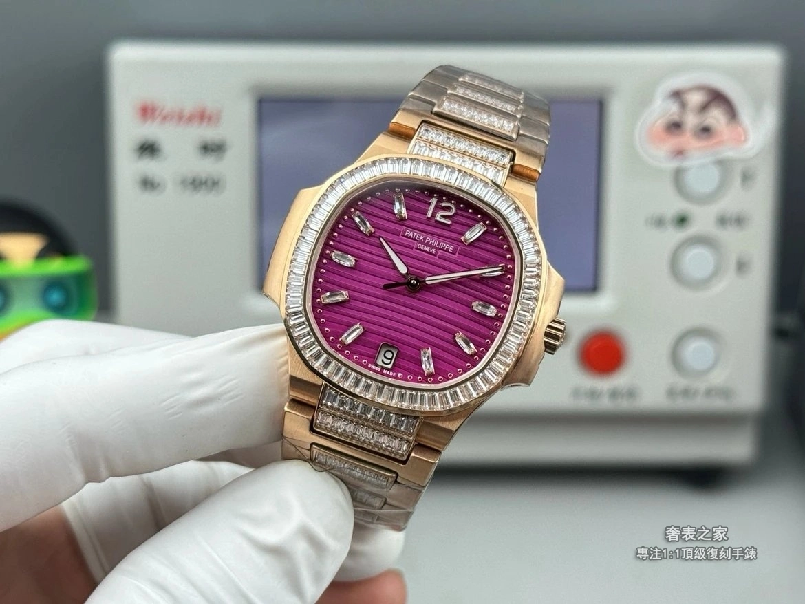 GF廠 百達翡麗 鹦鵡螺 7014 白金方鑽 高仿女士腕錶