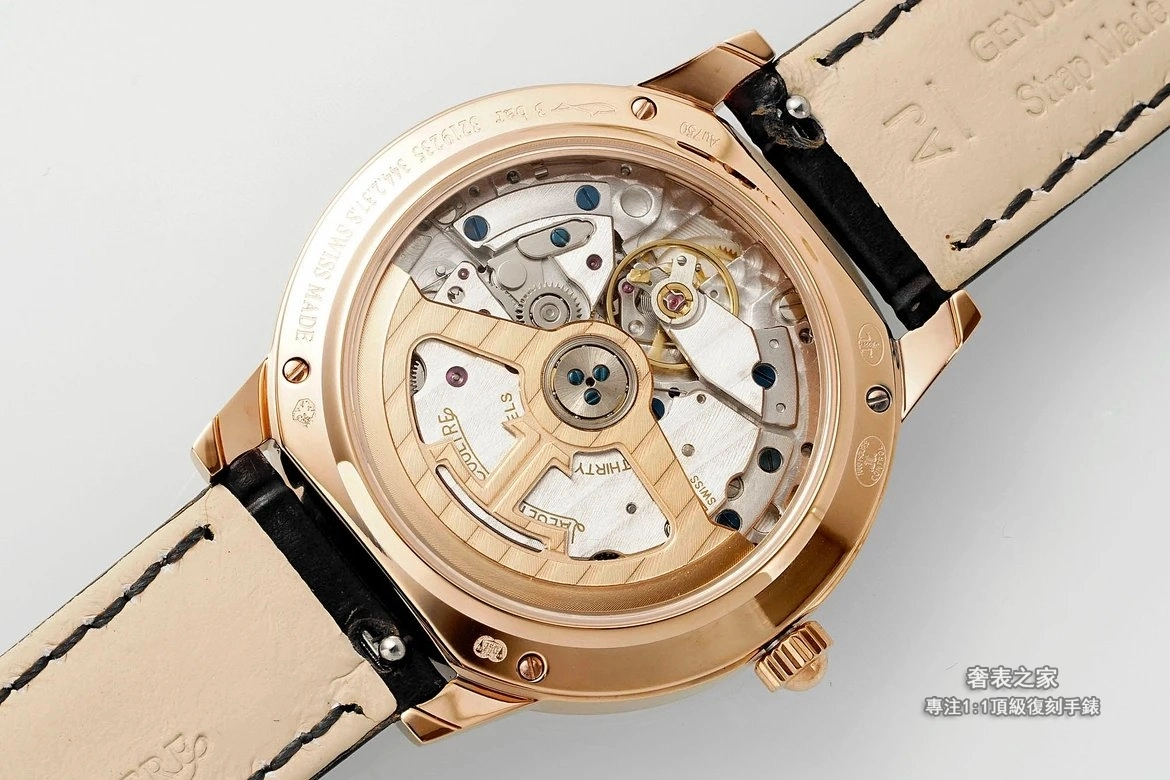 自動陀採用玫瑰金色處理,LOGO 也是立體凸起設計,細節表現到位。